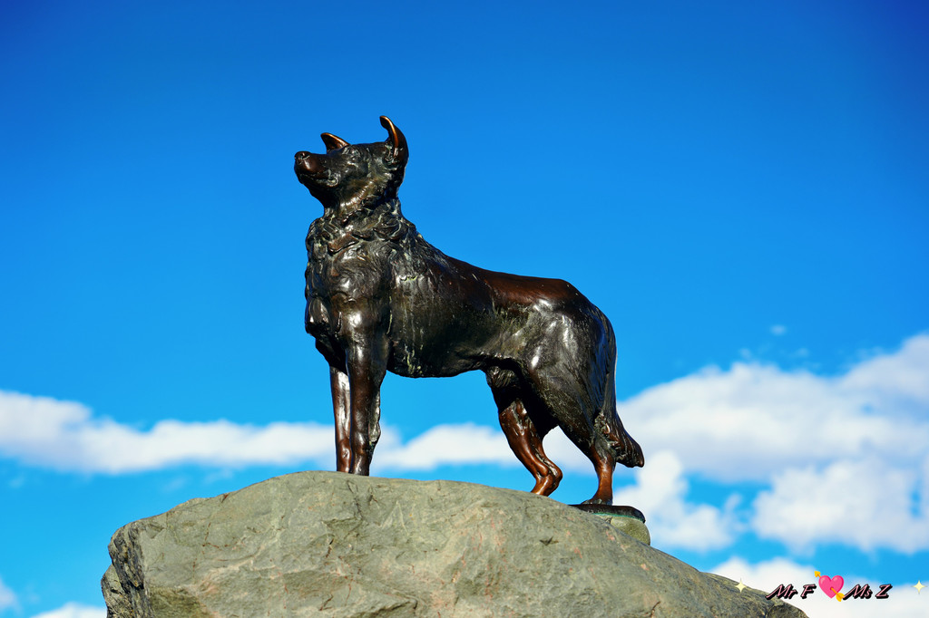 夕阳西下,金色的阳光洒在牧羊犬雕像上,只见它昂首挺立,目光坚定,仿佛正在执行主人交代的任务。整个雕像栩栩如生,细节之处尽显牧羊犬的忠诚与智慧,也让人感受到新西兰农牧历史的厚重与温情。