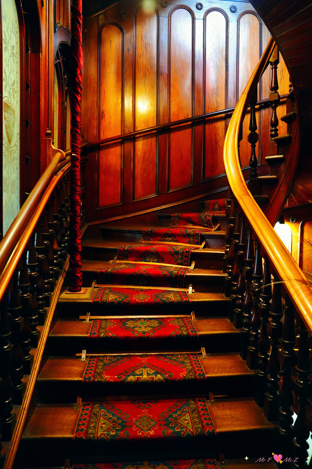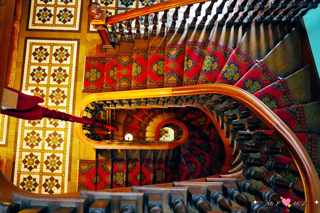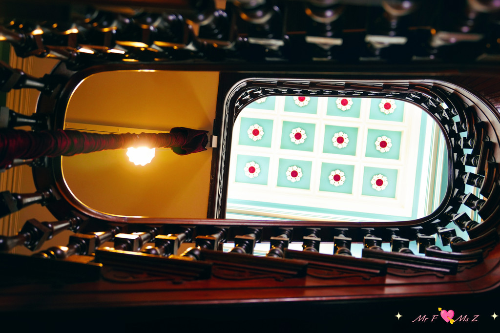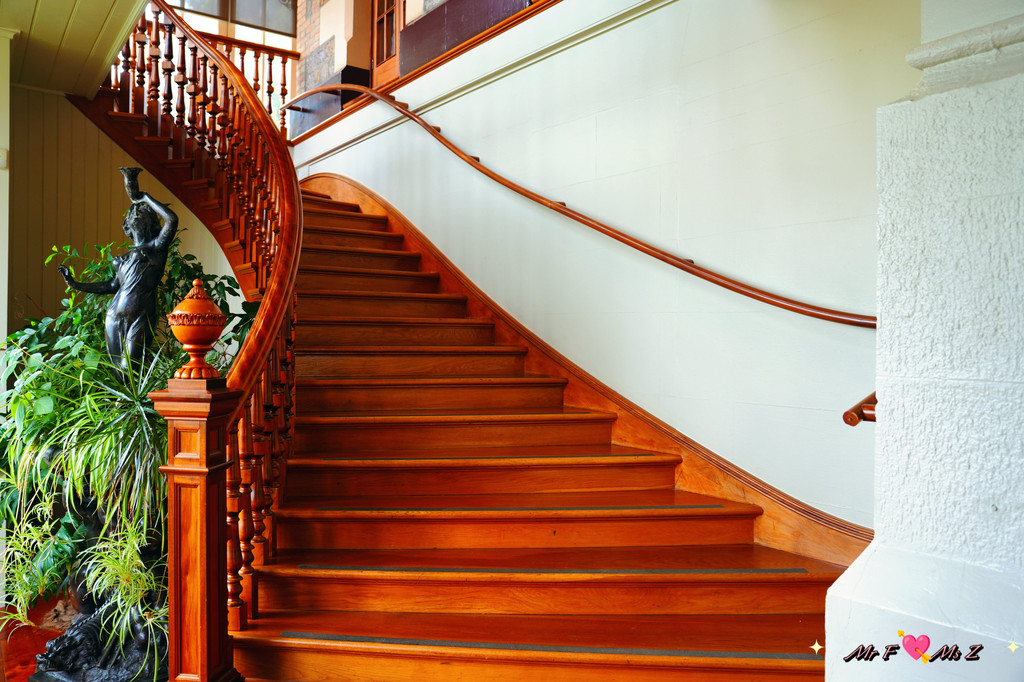 从图书馆出来是通往卧室楼层、育儿室楼层和塔楼的螺旋木质楼梯。上楼的同时,不妨抬头欣赏一下这座乔治亚风格的艺术品,线条流畅的扶手,造型优美的栏杆,堪称南半球独一无二的杰作。