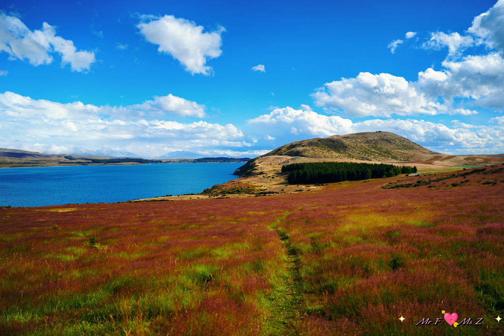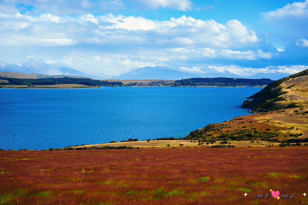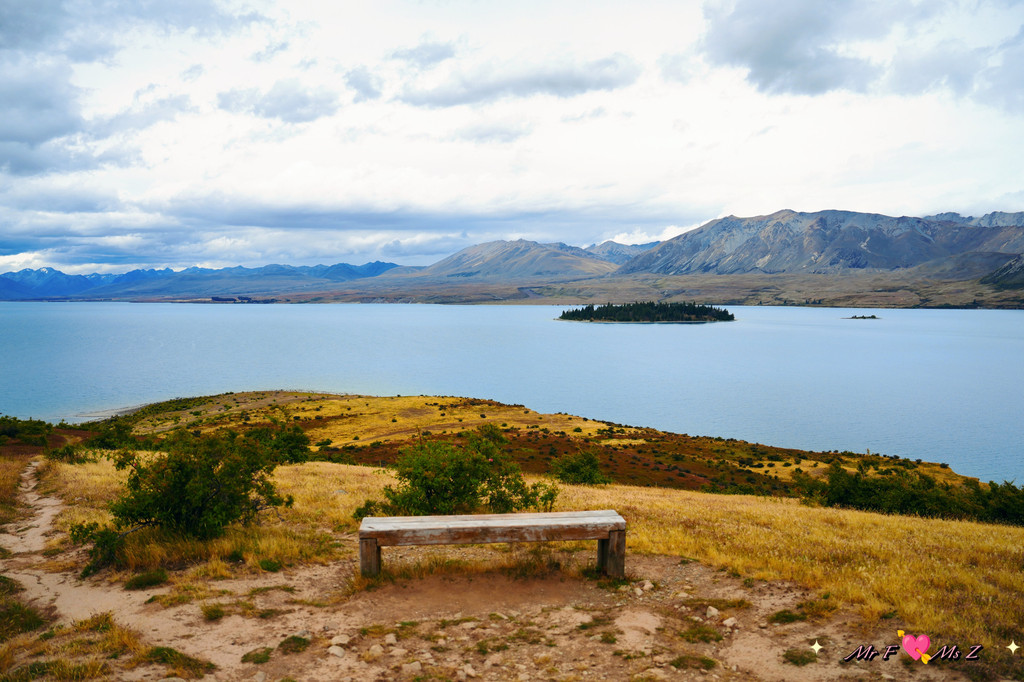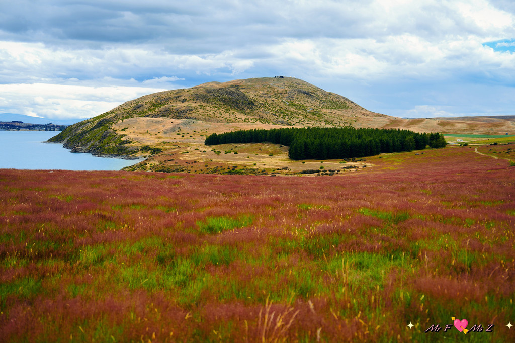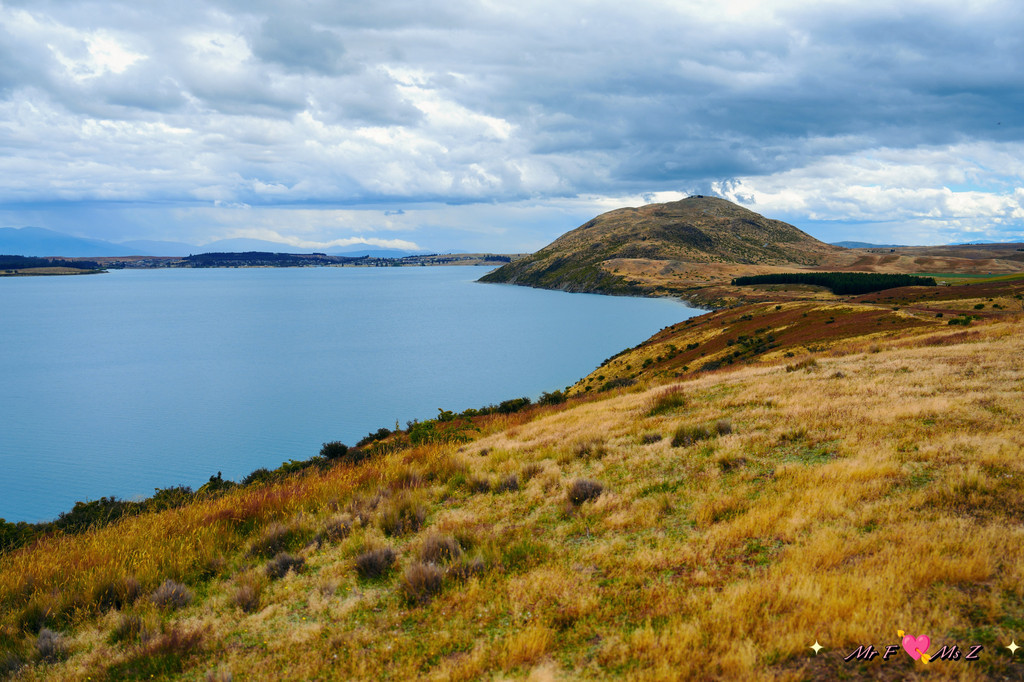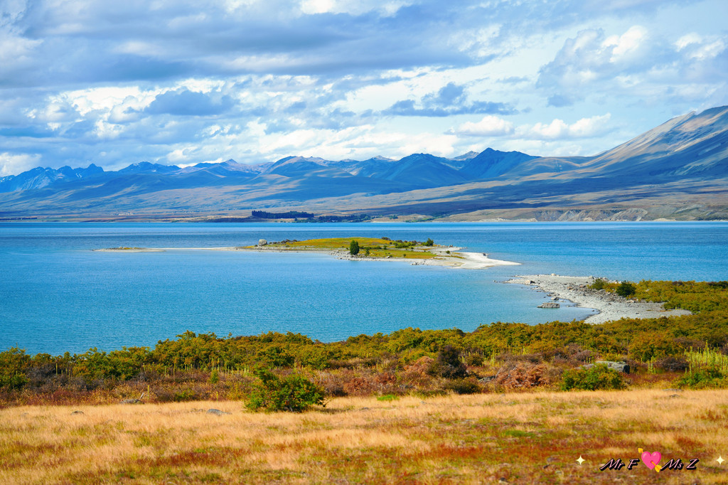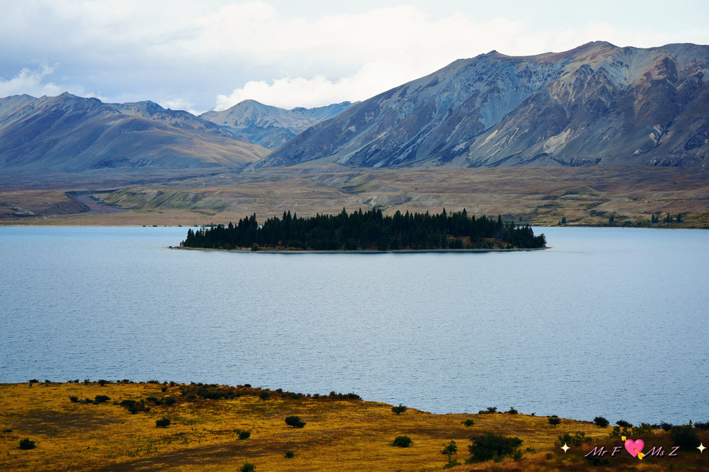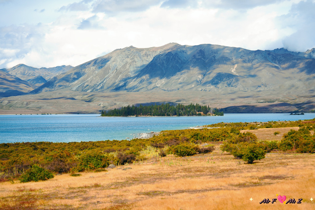 ★亮点:蒂卡普湖中段全景,莫图阿里基岛,草地和岩石湖岸线;