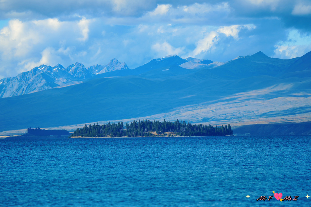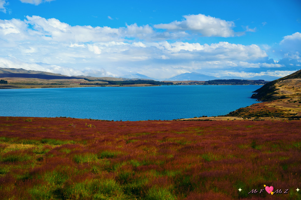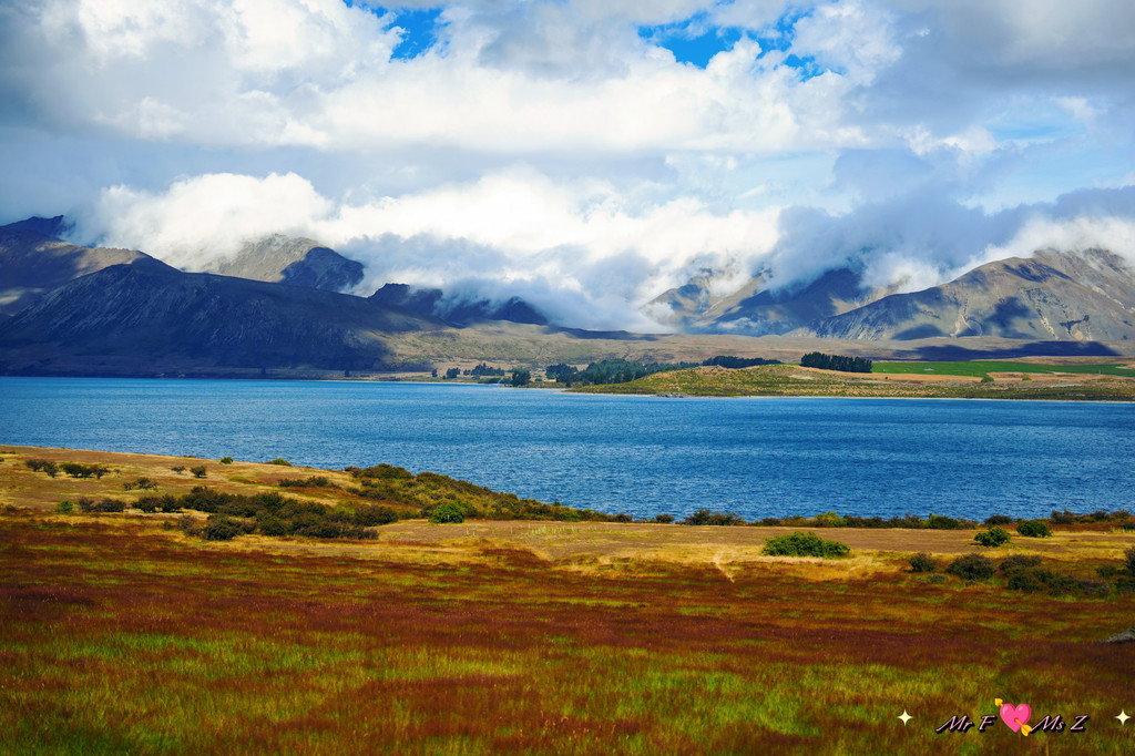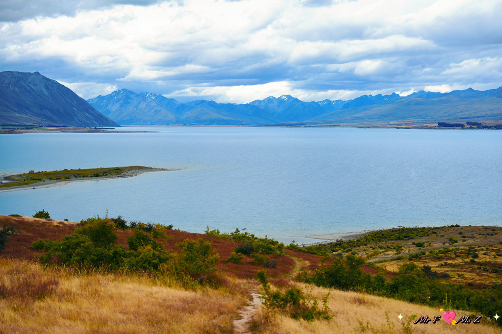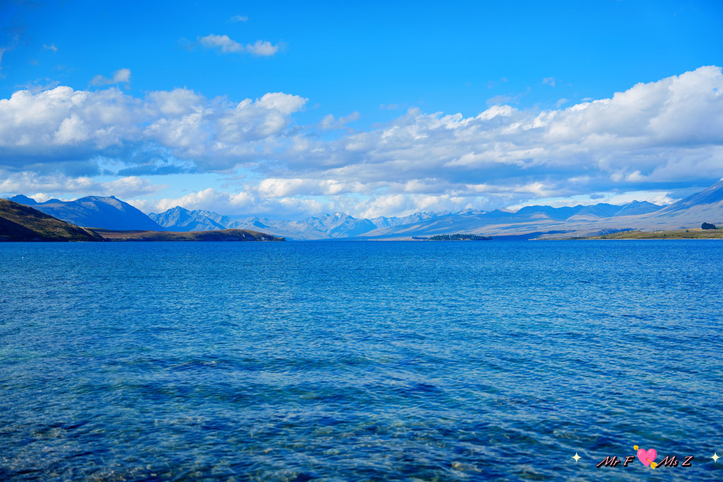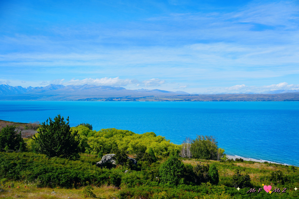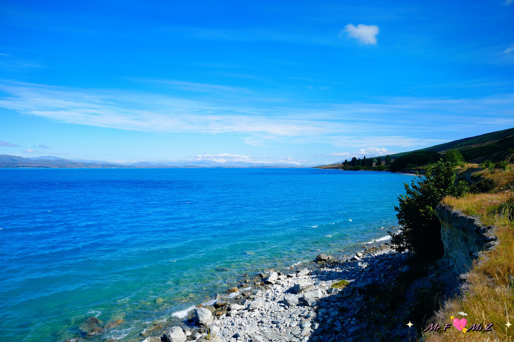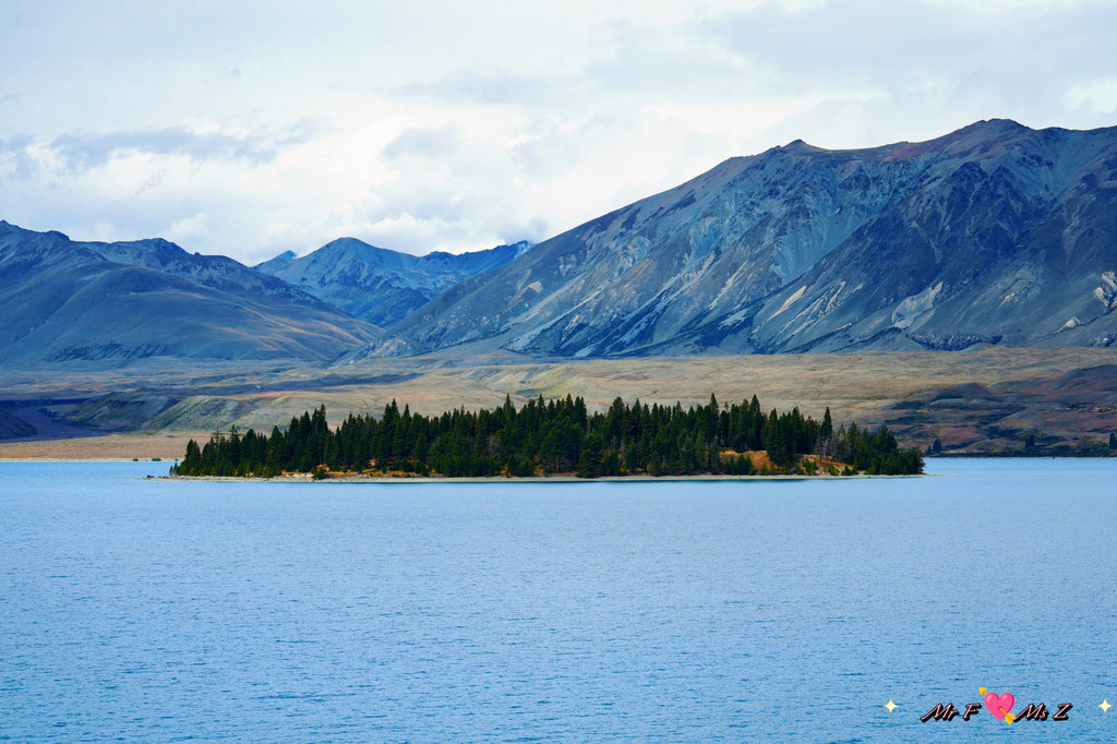 ★亮点:蒂卡普湖中段全景,莫图阿里基岛,草地和岩石湖岸线;