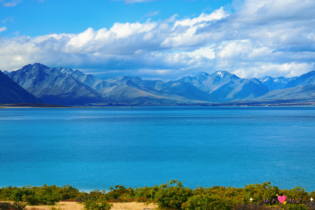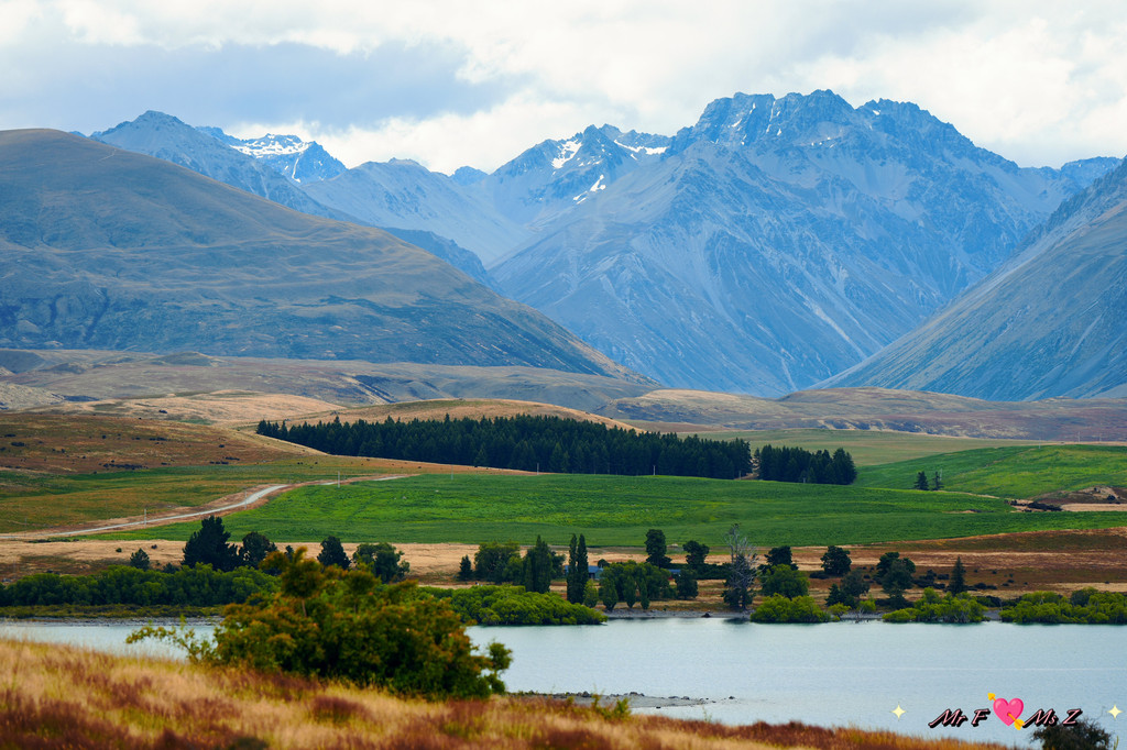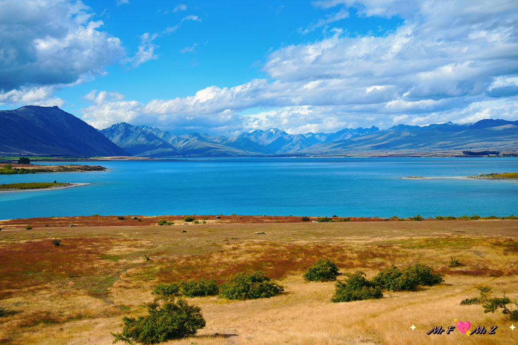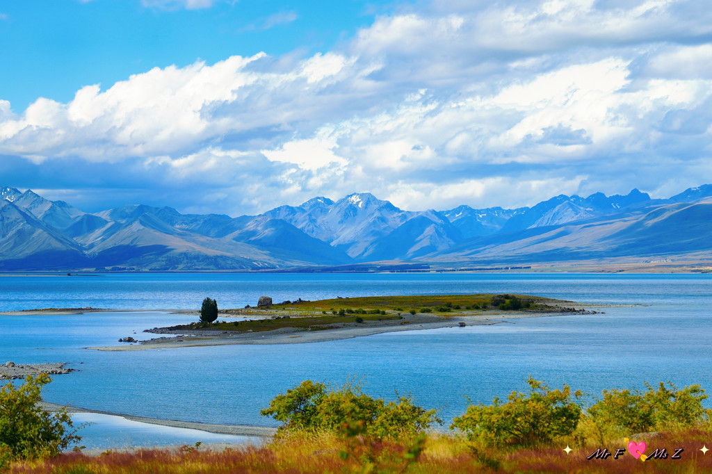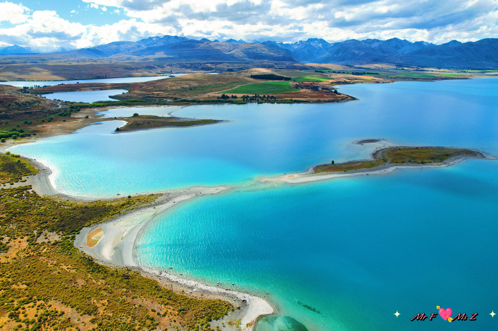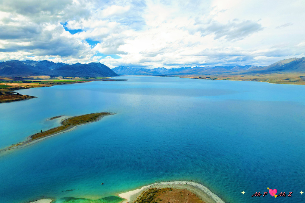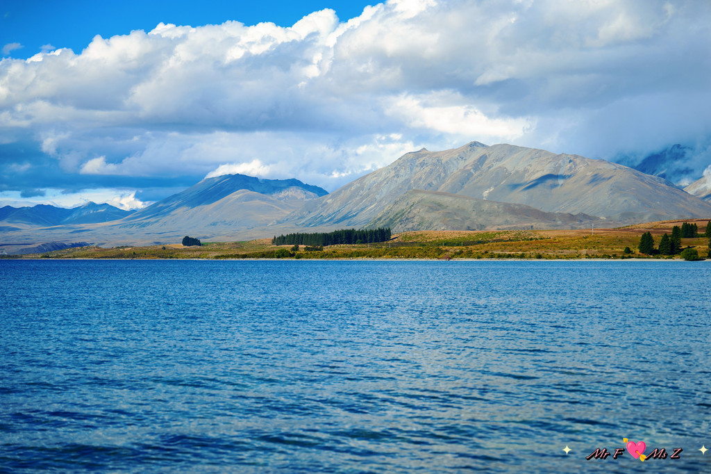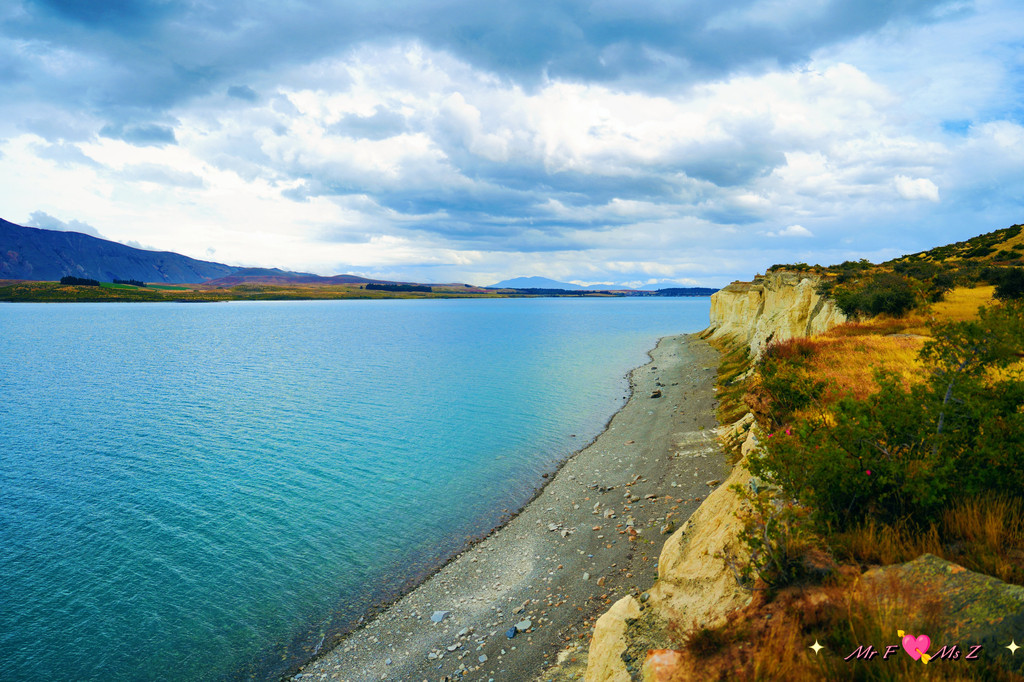 ★亮点:蒂卡普湖中段全景,莫图阿里基岛,草地和岩石湖岸线;