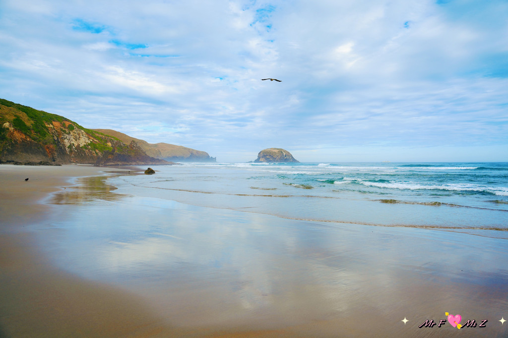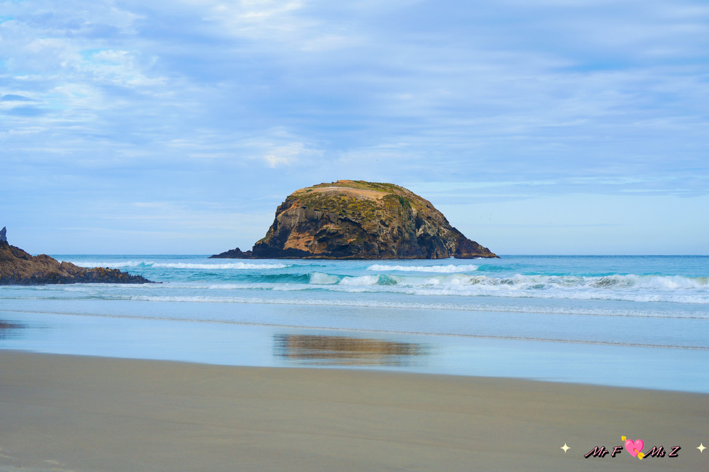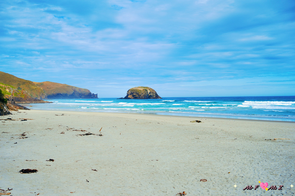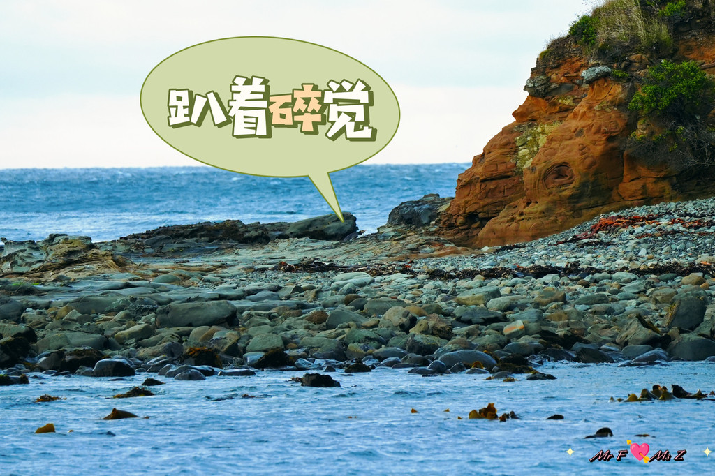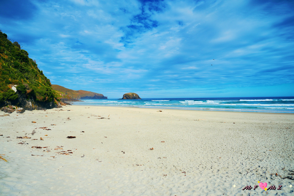 正当我们有些失望,准备离开时,一对正在本地度假的夫妇走了过来。他们热情地告诉我们,黄眼企鹅通常会在傍晚时分从海里返回陆地,但由于天气不好,风浪太大,企鹅可能会选择在远离海滩的岛上休息。他们还贴心地为我们指明了远处的一个小岛,说那里是企鹅的栖息地之一。