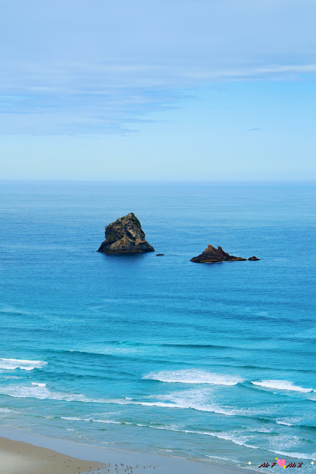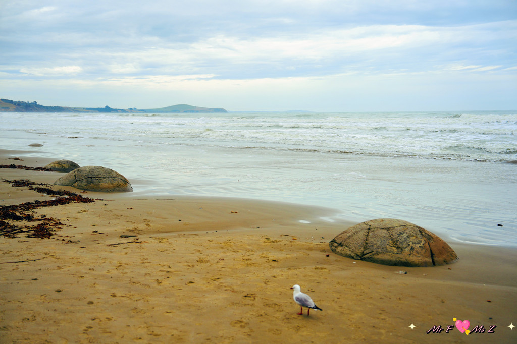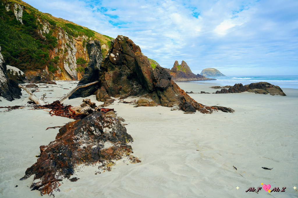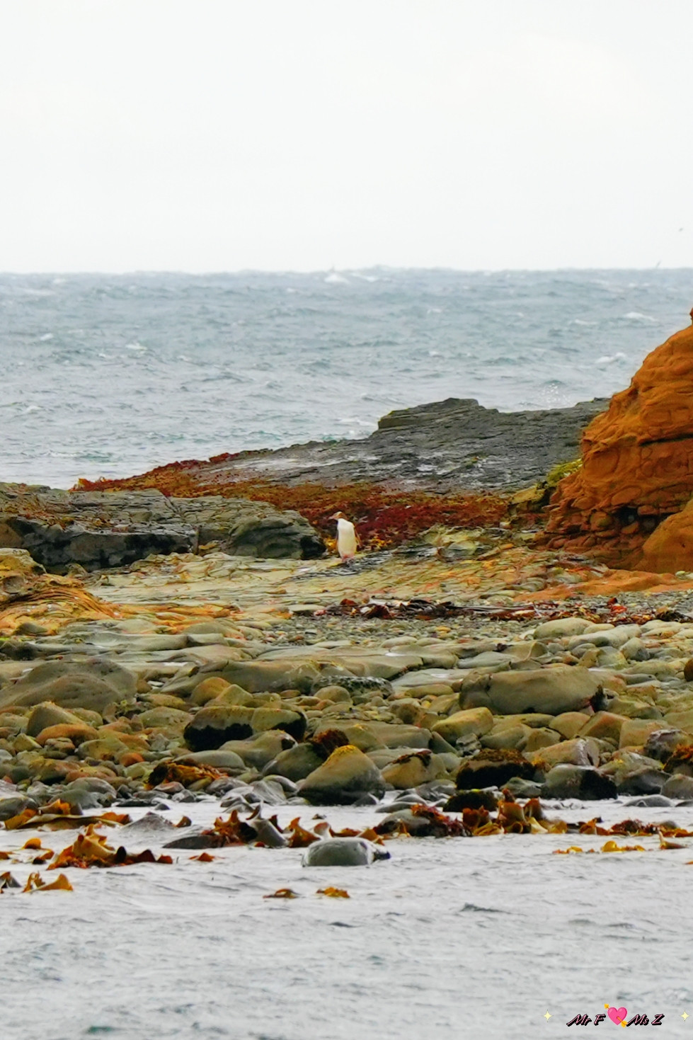正当我们有些失望,准备离开时,一对正在本地度假的夫妇走了过来。他们热情地告诉我们,黄眼企鹅通常会在傍晚时分从海里返回陆地,但由于天气不好,风浪太大,企鹅可能会选择在远离海滩的岛上休息。他们还贴心地为我们指明了远处的一个小岛,说那里是企鹅的栖息地之一。