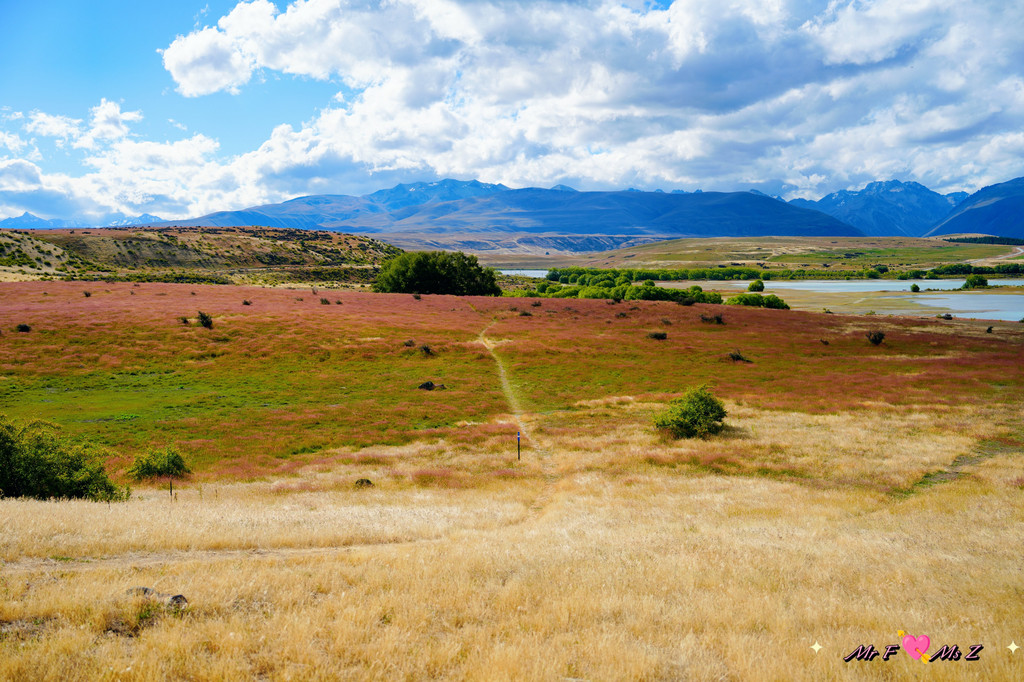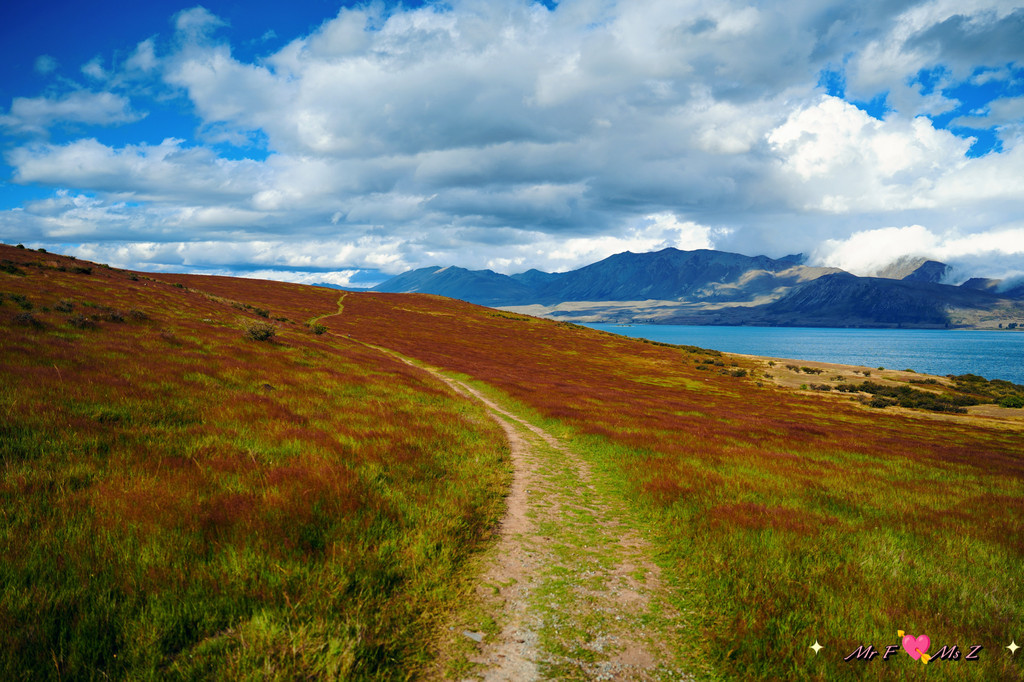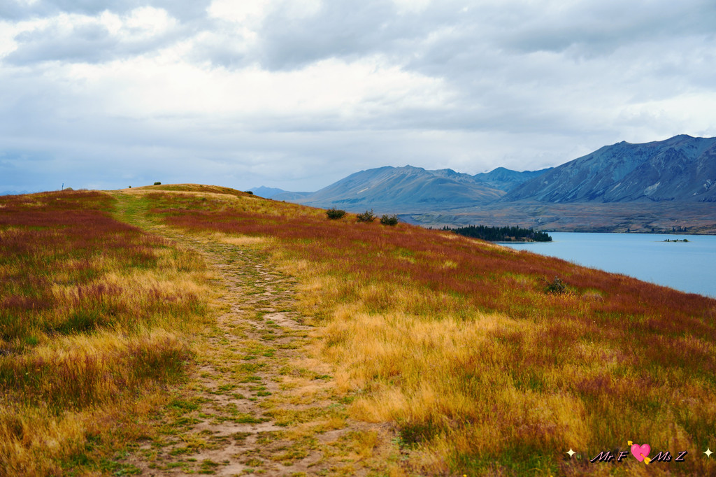 步道的初始部分会穿过一大片被红色草丛覆盖的田野,这种红草在南岛高海拔地区十分常见。它的红色在阳光的照射下格外耀眼,与蒂卡普湖的碧蓝湖水和周围的雪山形成鲜明对比,成为一道独特的风景线。