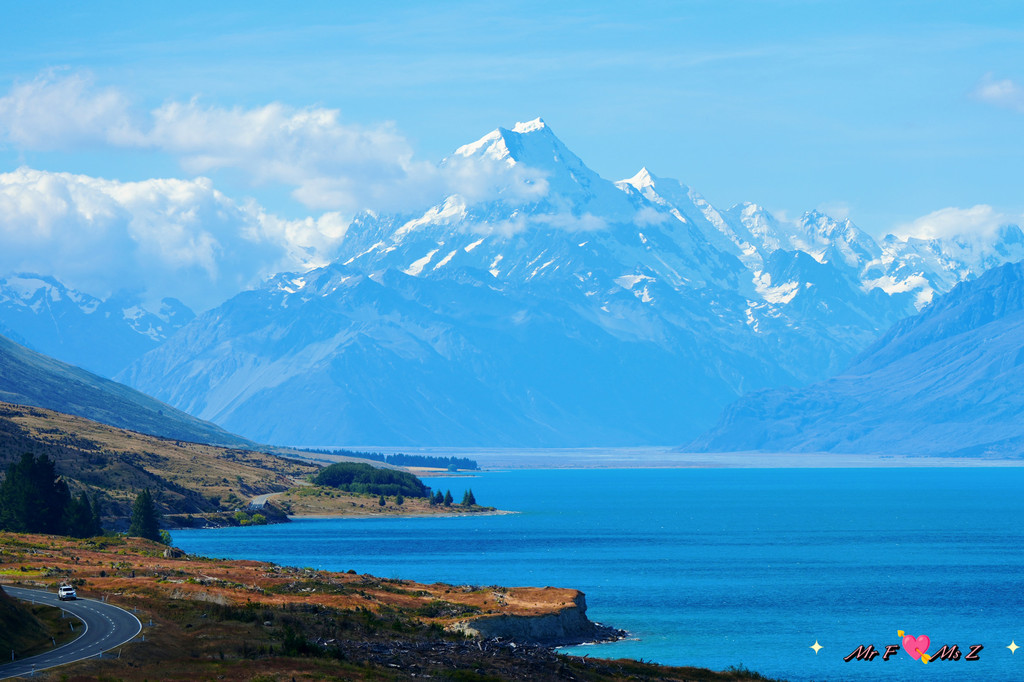 即使错过了彼得观景台,也无需遗憾。随着驾车逐渐靠近库克山,类似的美景还会反复出现。只要路边有足够的空间,你就可以停下车来,饱览这南岛最极致最纯粹的蓝。