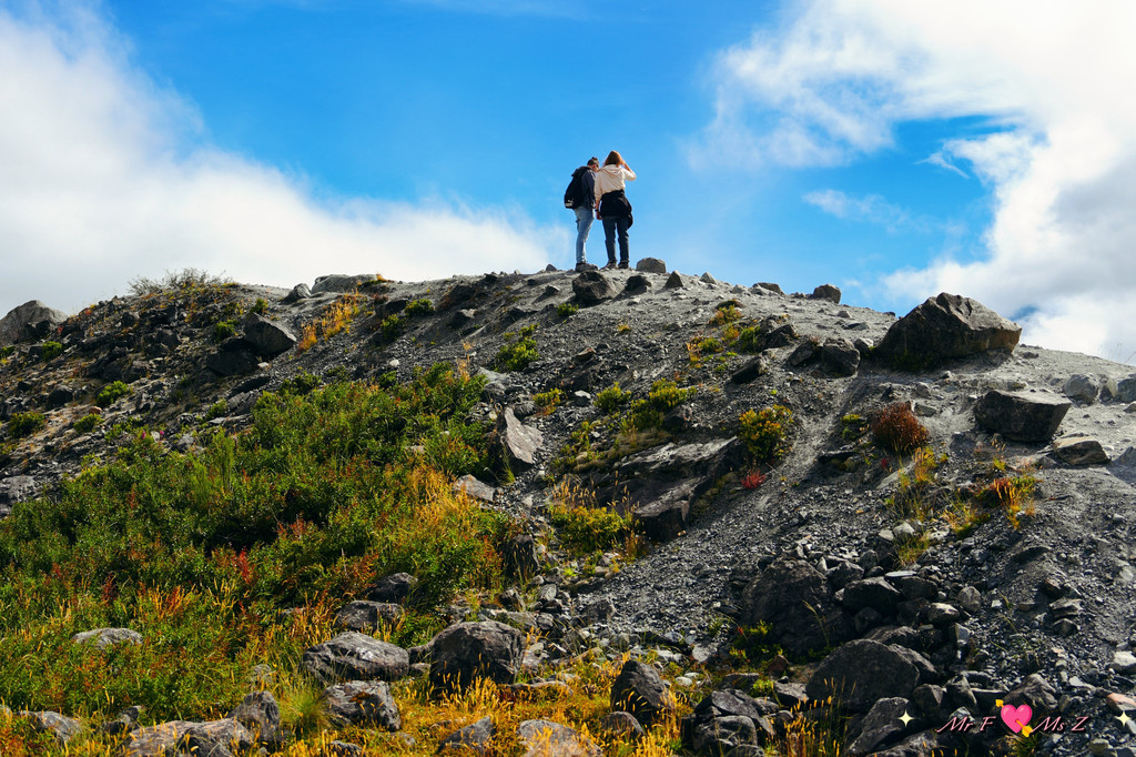 接下来的行程有两种选择,一是走下山坡沿湖岸前往另一个停车场;二是原路返回。本着不走回头路的原则,我们选择了前者。大概是上天被我们的诚意所感动,头顶的天空在云卷云舒间,开始慢慢放晴。