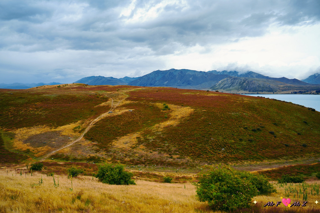 徒步的过程中,我们经历了阴晴两重天。下面我放两组对比图,大家可以清晰地感受到,天气对于湖泊的重要性。阴云密布下的蒂卡普湖,仿佛蒙上了一层灰纱,失去了往日的灵动与光彩;而晴空万里时,湖水美得令人屏息。可以说,阳光是湖泊的灵魂,没有它的点缀,蒂卡普湖便少了几分惊艳。