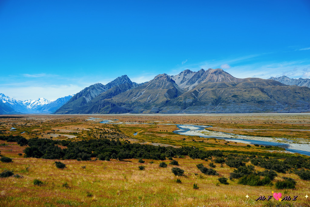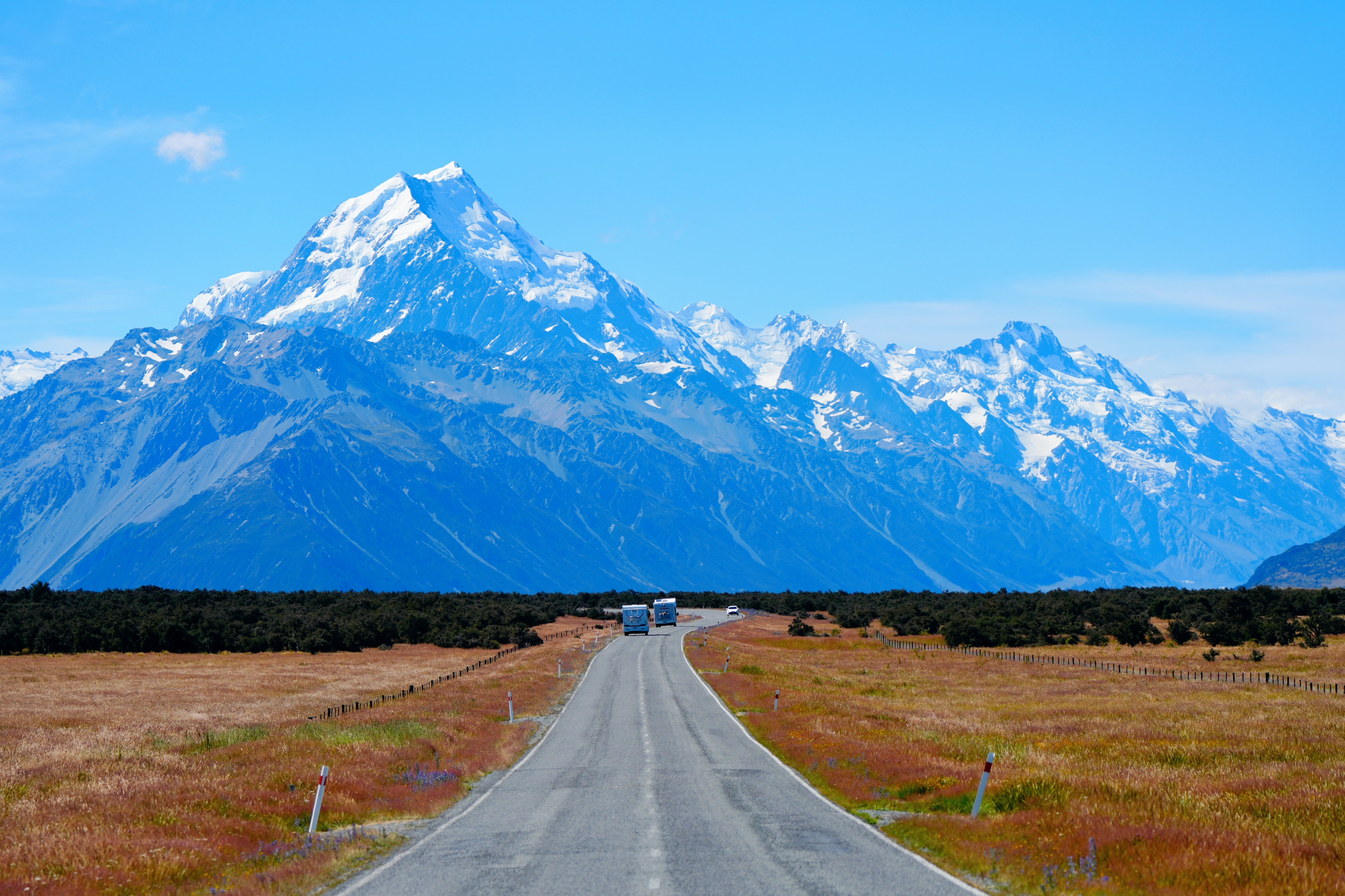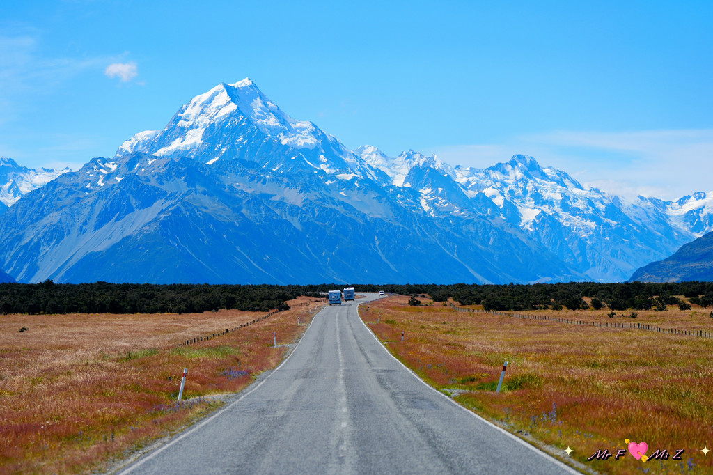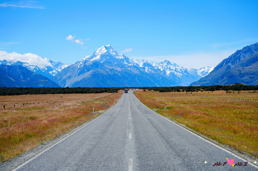 当你沿着公路行驶时,湛蓝的普卡基湖、连绵的南阿尔卑斯山脉、流淌的塔斯曼河(Tasman River)以及广袤的河谷会毫无保留地展现在你眼前。