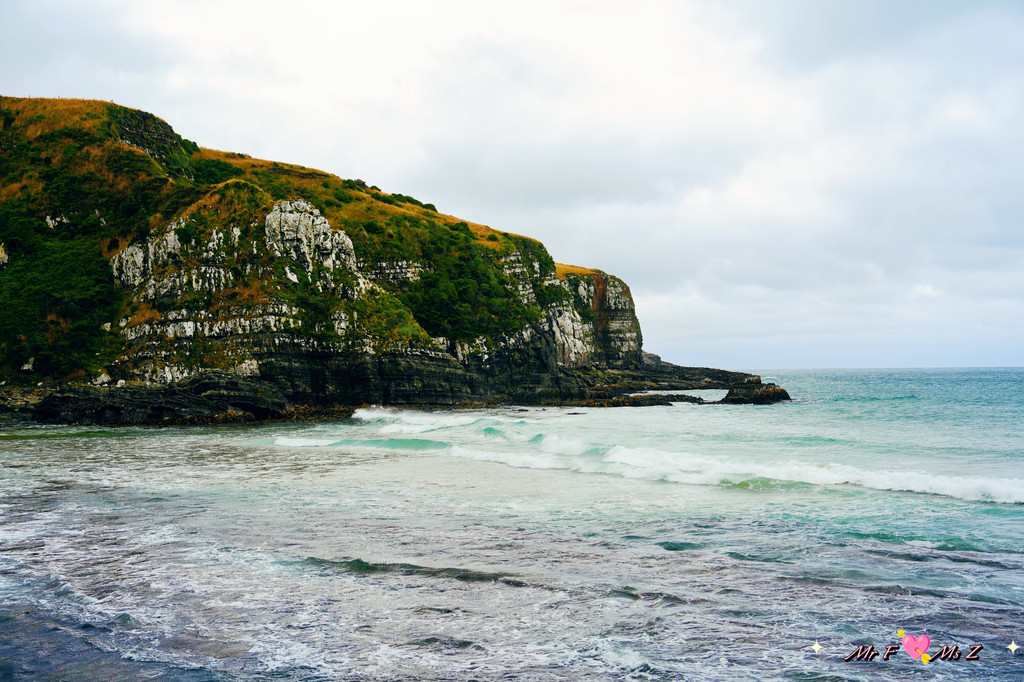 从奥瓦卡到杰克湾的路程并不远,但天气却有些阴沉,海风呼啸,海浪拍打着岸边的礁石,发出阵阵轰鸣。抵达杰克湾时,海滩上空无一人,只有风声和海浪声交织在一起,显得格外空寂。我们沿着步道走向海滩,目光在嶙峋的岩石和翻滚的浪花间搜寻,却始终没有发现企鹅的踪影。