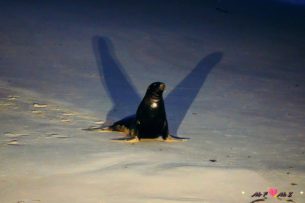 工作人员压低声音,轻轻提醒道:“看!那边有一个黑影。”果然,除了我们,还有一位不速之客悄然现身于海滩上。它正虎视眈眈地凝视着大海的方向,仿佛在等待着什么。那是一只海狮,也是小蓝企鹅众多天敌之一。夜色中,一场自然的博弈即将上演,既残酷又真实,令人不禁为小蓝企鹅的命运捏了一把汗。