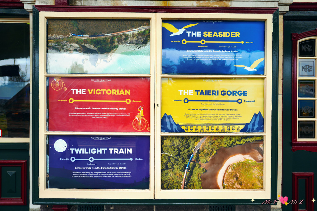一、目前仍有三趟火车在使用但尼丁火车站,分别是著名的泰伊里峡谷观光列车(Taieri Gorge Railway Scenic Journey,往返5小时)、海岸线观光列车(Seasider Scenic Journey,往返3.5小时)以及往返于但尼丁和奥玛鲁之间的维多利亚线(8.5小时)。想要体验的话,可以直接在售票处购票。