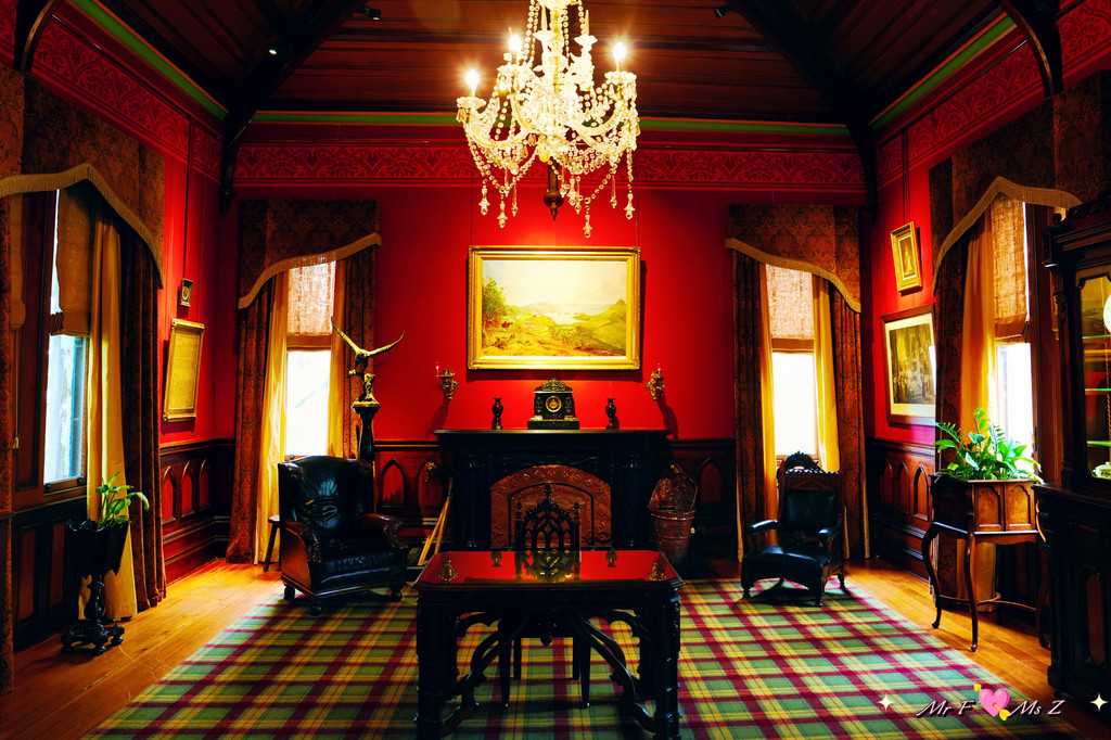官方推荐的参观路线从地下一层开始,这里设有一间枪械室。与之相对的是拉纳克房间(Larnach Room),迎面而来的展板娓娓道来威廉·拉纳克建造这座城堡的传奇故事,室内还陈列着与他的家族息息相关的珍贵物品。