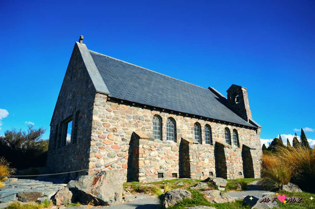 教堂建于1935年,由当地的灰色石材砌成,屋顶线条平缓,外观简约而庄重,与远处的南阿尔卑斯山脉遥相呼应,成为蒂卡普湖畔一颗璀璨的明珠。
