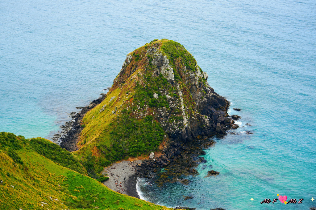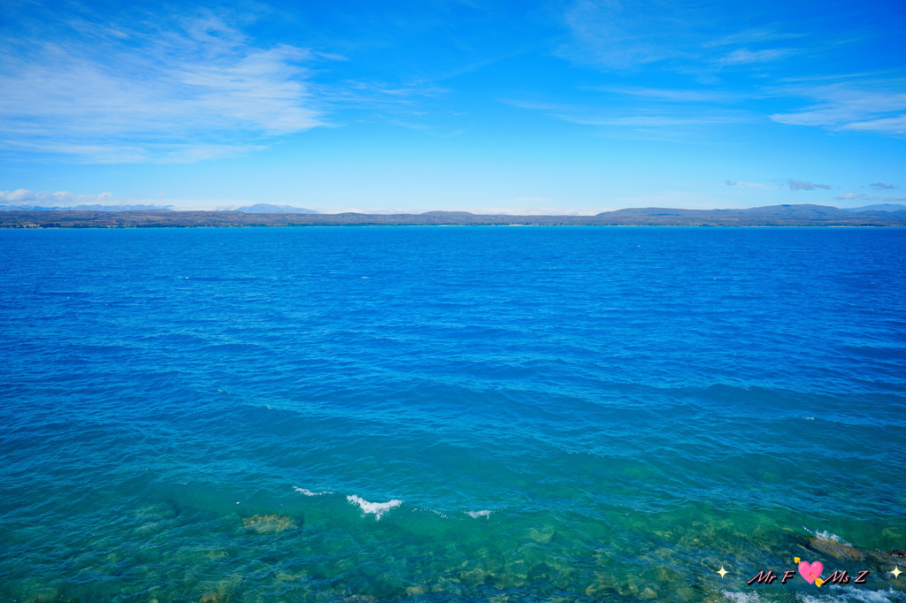 趁着回味的那点工夫,不知不觉间,我们已经走到了步道的尽头。居高临下,眼前豁然开朗,蒂卡普湖中最大的岛屿——莫图阿里基岛完整地展现在我们面前。