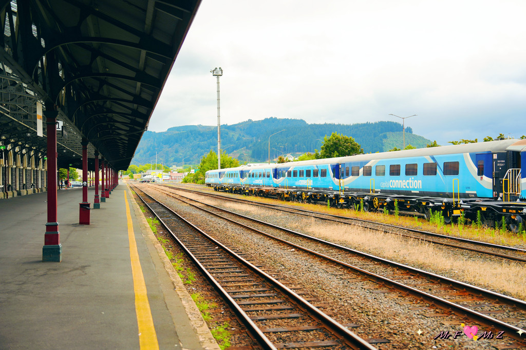 沿着站台漫步,雨滴轻轻地敲打着站台的顶棚,发出清脆的声响。一公里长的主站台是新西兰国内最长的站台,延伸向远方的铁轨在雨雾中若隐若现。站台上偶尔有游客驻足拍照,或是静静欣赏这座建筑的细节。