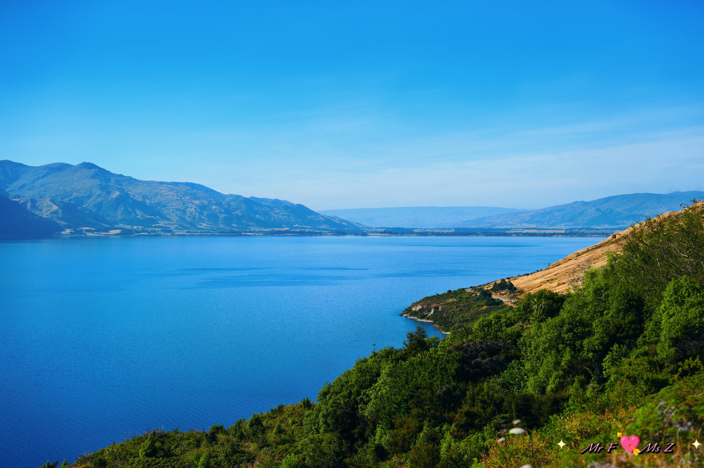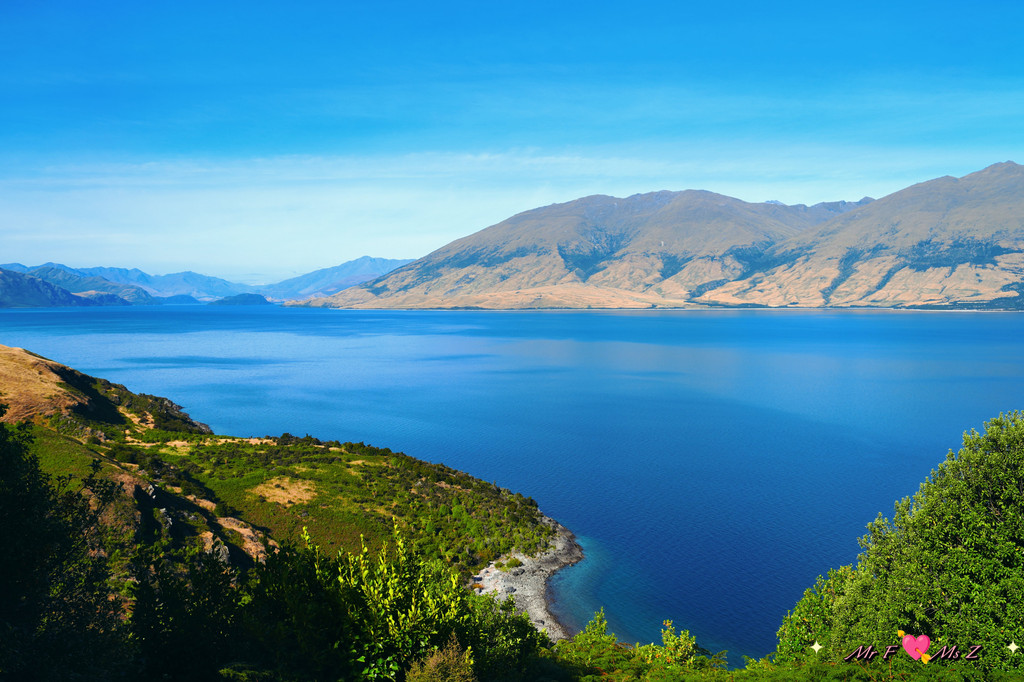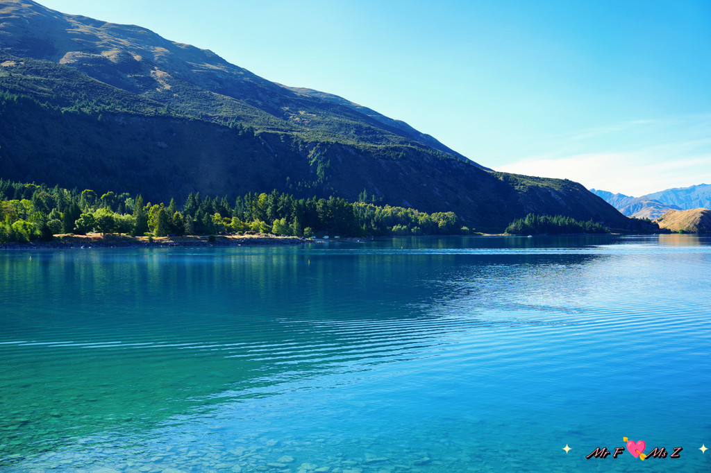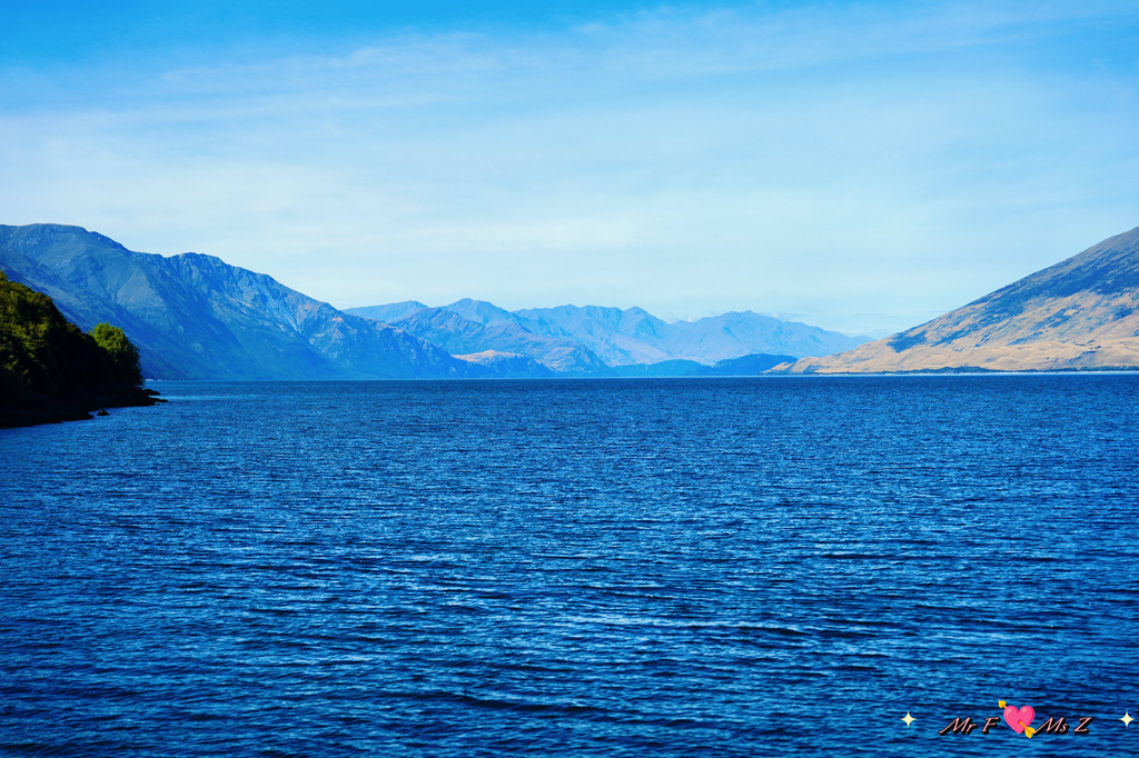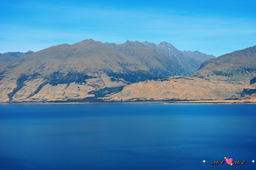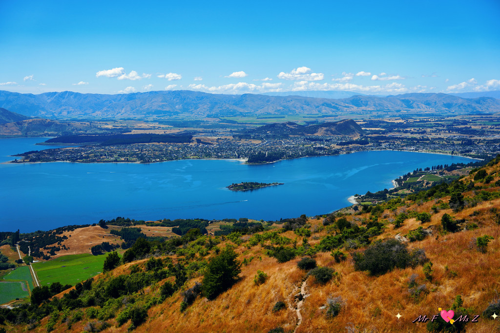 驻足回望,瓦纳卡湖的全貌渐渐展露,湖水在阳光下呈现出梦幻的蓝绿色,像一块缀嵌在群山之间的翡翠。