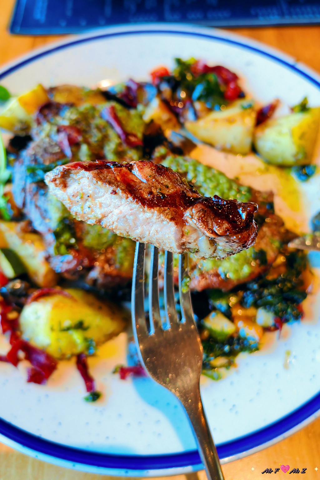 当服务员端上主菜时,那块厚切的牛排正散发着诱人的焦香。表面烙着完美的菱形烤纹,切开时粉红色的肉质渗出晶莹的肉汁,像极了南岛晨曦中初融的雪水。