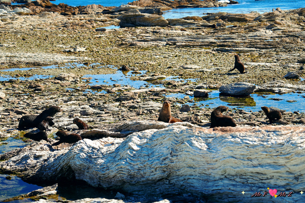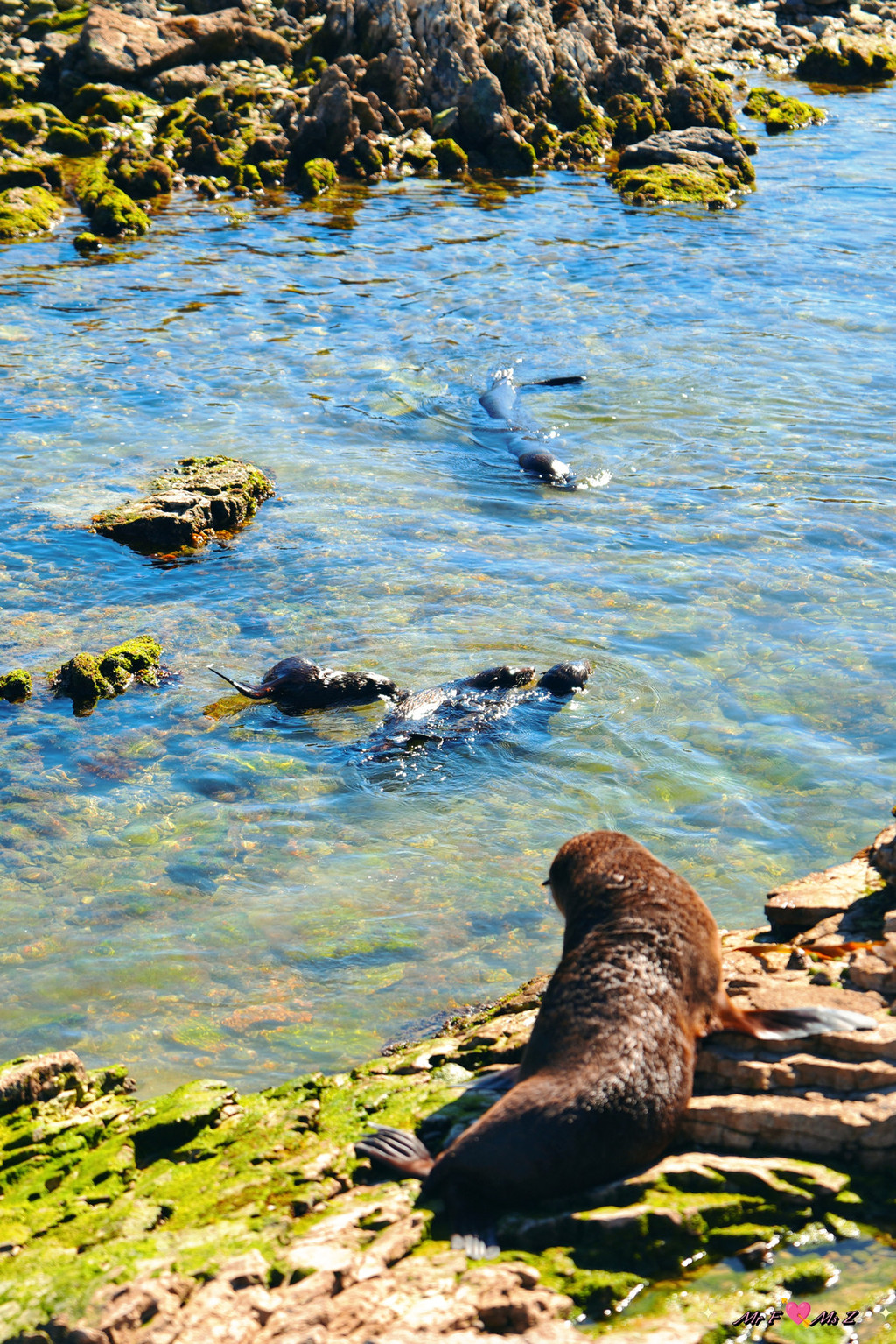 停车场外围的礁石平台同样栖息着很多雌性海豹及其幼崽。每当潮水退去,你可以直接前往礁石滩探索。那里经常能看到蛎鹬、礁鹭觅食的场景。若运气够好,还能捕捉到小蓝企鹅在近岸浪花中欢快嬉戏的身影。