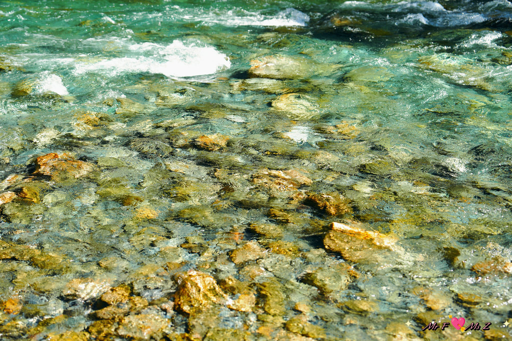 虽然无缘体验凌空俯瞰的震撼,但桥下的石滩却为我们打开了另一扇窗——桥影婆娑,流水潺潺,每一处波纹、每一粒砂石,都在演绎着吊桥视角永远无法捕捉到的微观诗意。