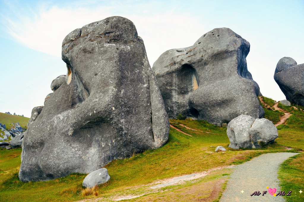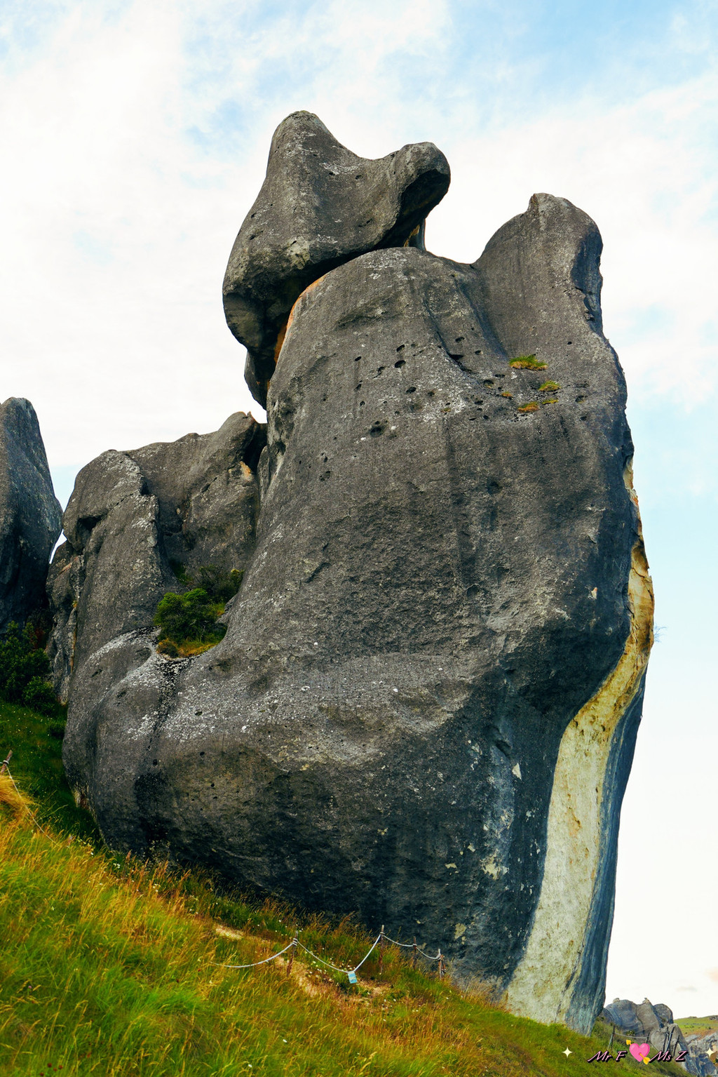 前往下一个观景台需要绕过一个小山头,在这段步道附近的海崖上,正孕育着一个崭新的赫顿鹱群落。赫顿鹱是一种濒临灭绝的新西兰特有的迁徙性海鸟,夏季的时候,经常可以目睹它们成群漂浮于海面上的壮观景象。
