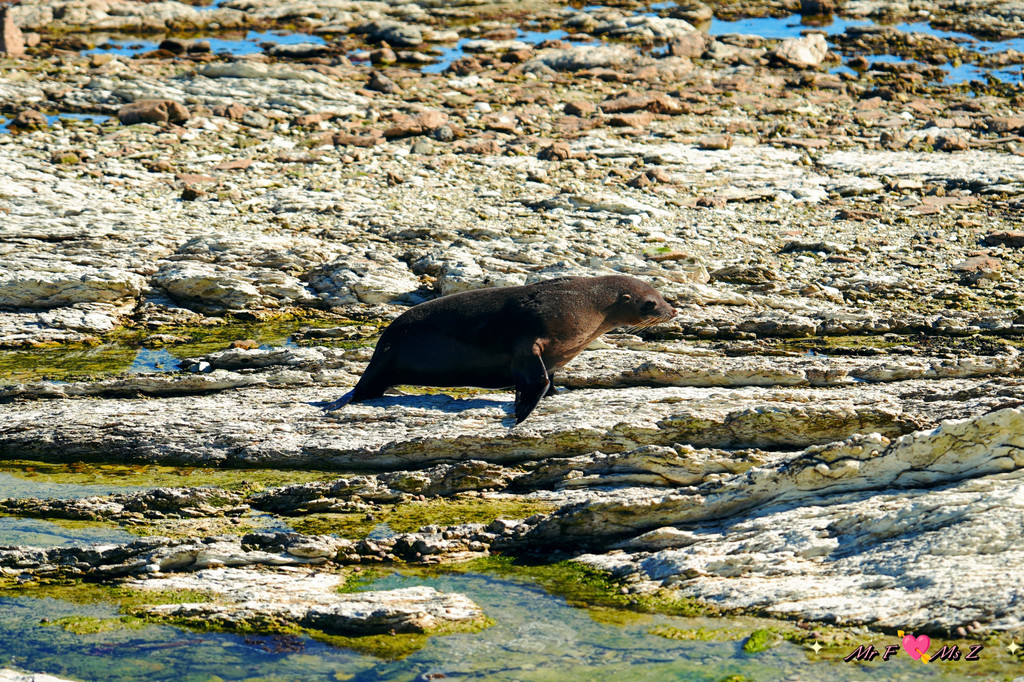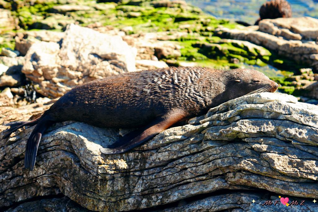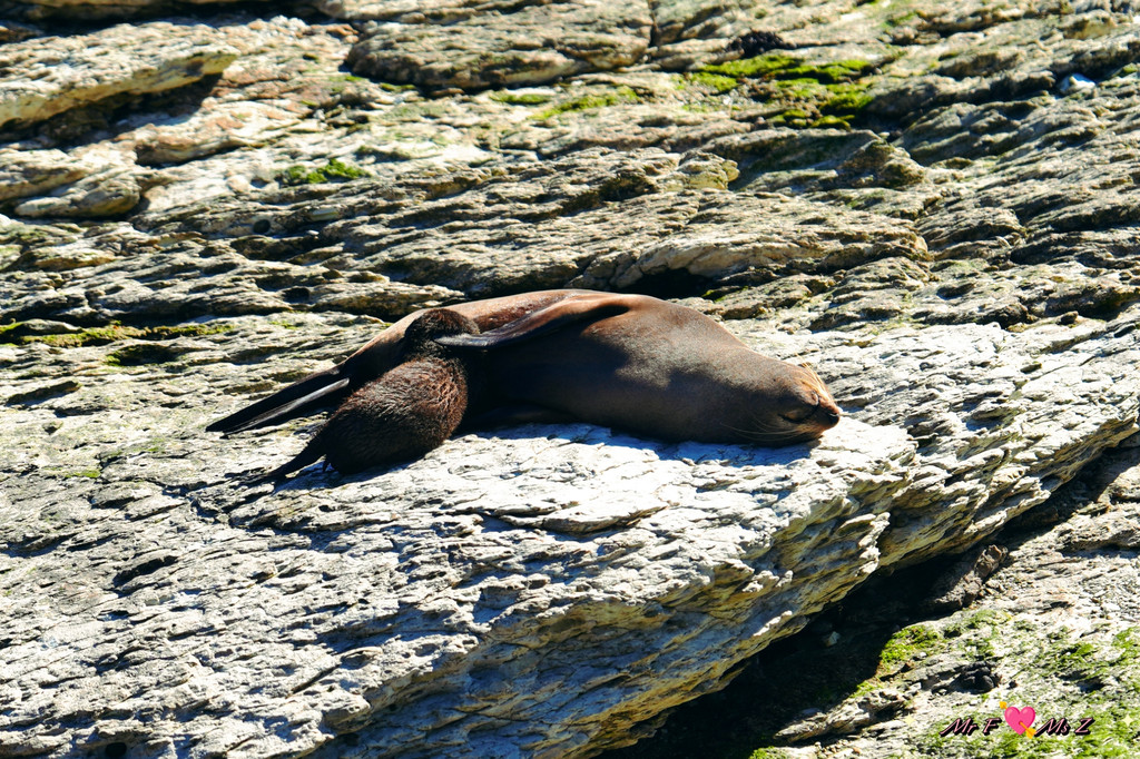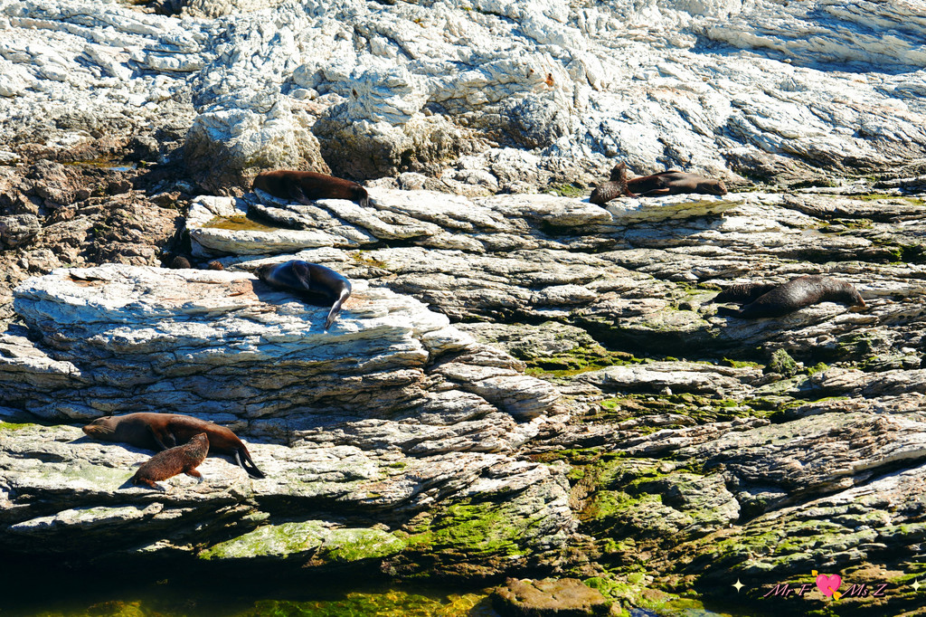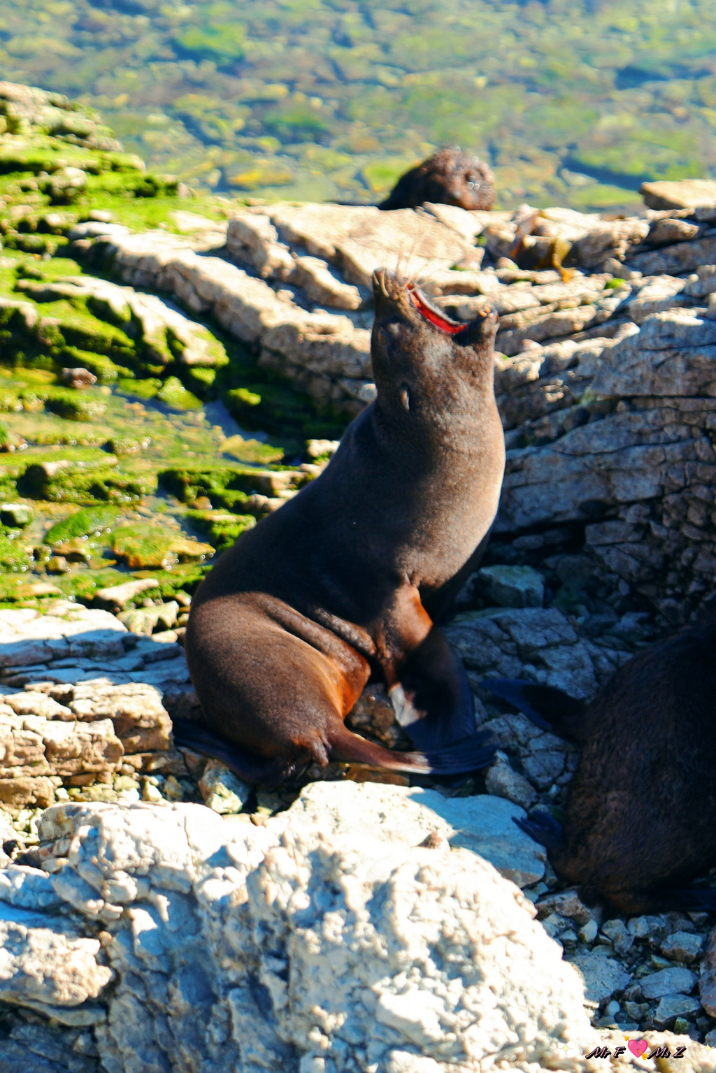 由于黑白对比强烈,你很容易就能发现新西兰毛皮海豹的身影。它们或三五成群地瘫在岩石上打盹,任由阳光烘烤着油亮的皮毛;或在清澈的浅湾里追逐嬉戏,溅起的水花在阳光下闪闪发亮。