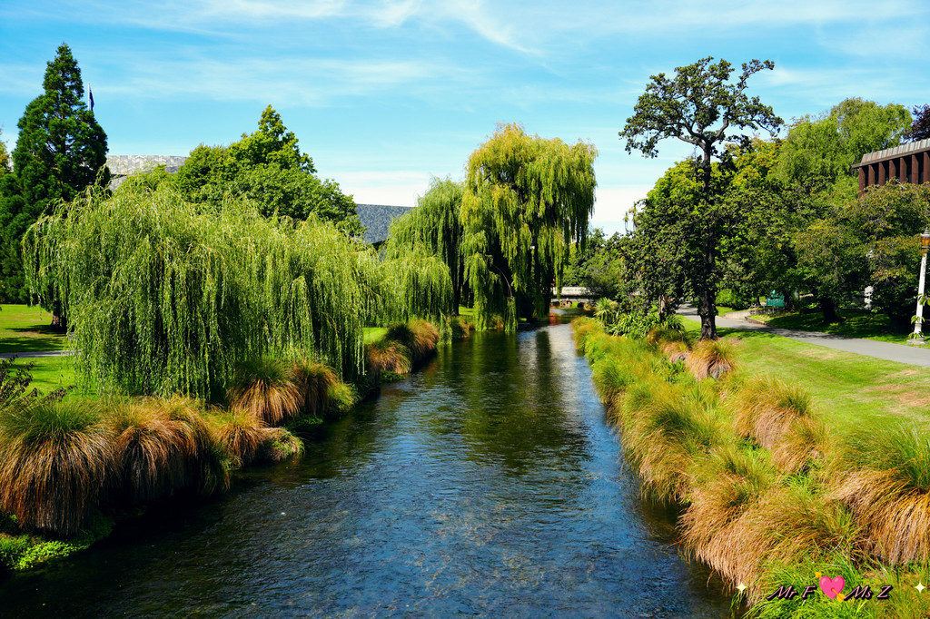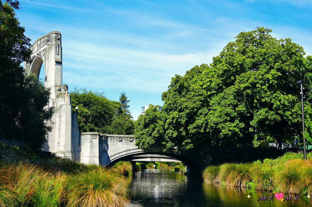 南岛环游的起点与终点在基督城(Christchurch)完美重合,仿佛画下了一个圆满的闭环。这座新西兰第二大城市(人口约34万)依山傍海,背靠苍翠的海港山(Port Hills),面朝浩瀚的太平洋。城中雅芳河(Avon River)和希思科特河(Heathcote River)蜿蜒交汇,如同天然的翡翠项链,将无数葱郁的花园、绿地与林荫大道串联在一起,编织出“花园城市”的锦绣画卷。