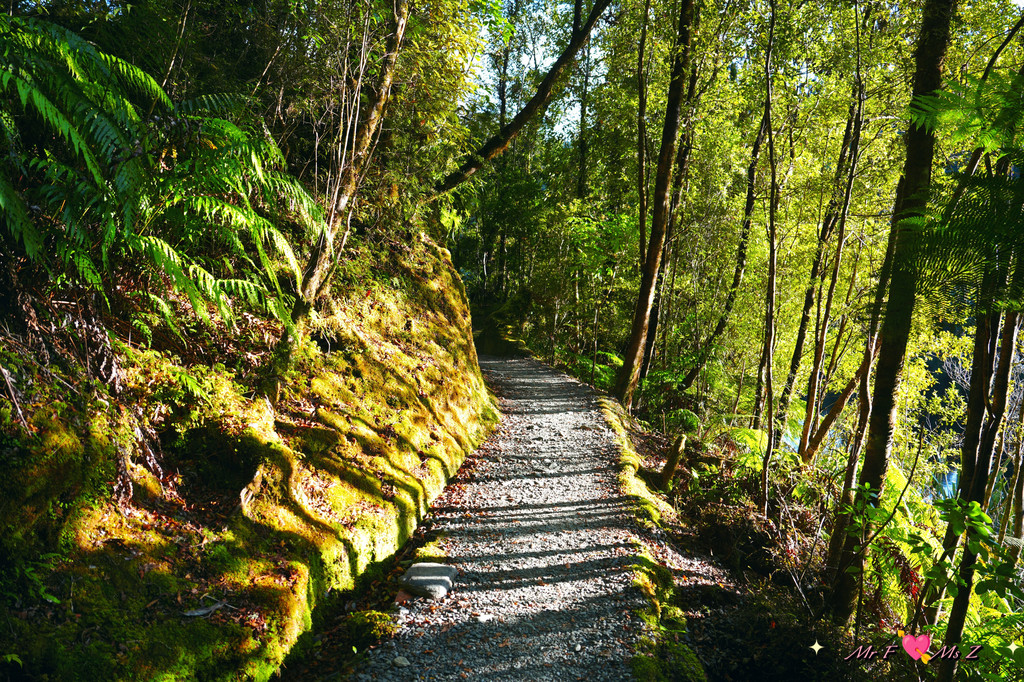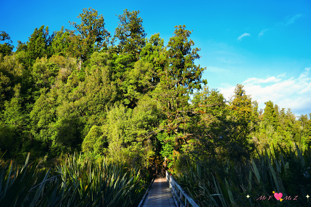 抵达之初,我们有些沮丧,因为步道入口的指示牌上张贴着吊桥因维修关闭的通知,好在森林步道仍正常开放。望着手中精心准备的攻略,我们相视一笑:“既然来了,总要亲眼看看这片传说中的蓝色秘境。”