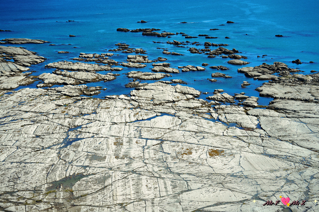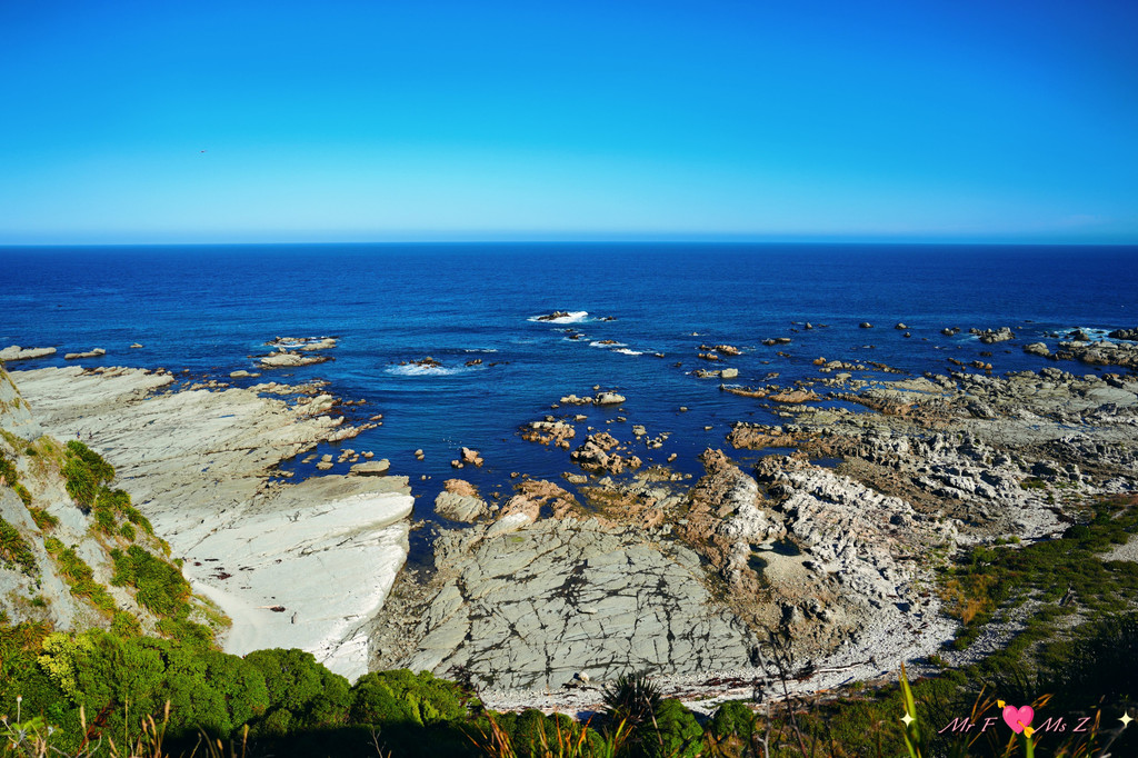 在海风的轻拂下,沿着悬空于礁石滩之上的步道前行,很快便能登上南湾观景台(South Bay Viewpoint)。极目远眺,石灰岩湾(Limestone Bay)的美景尽入眼帘。