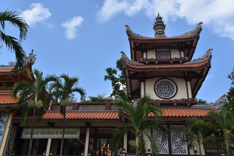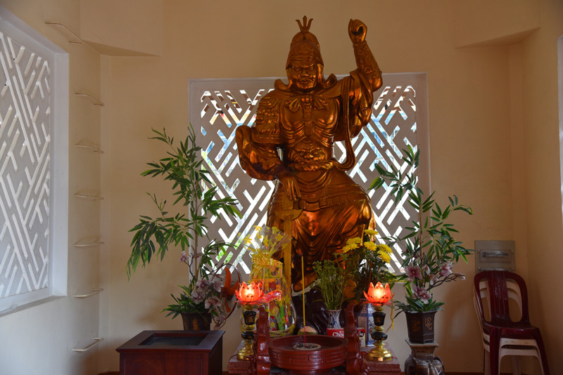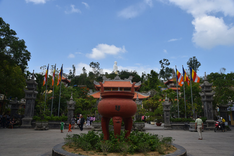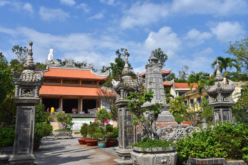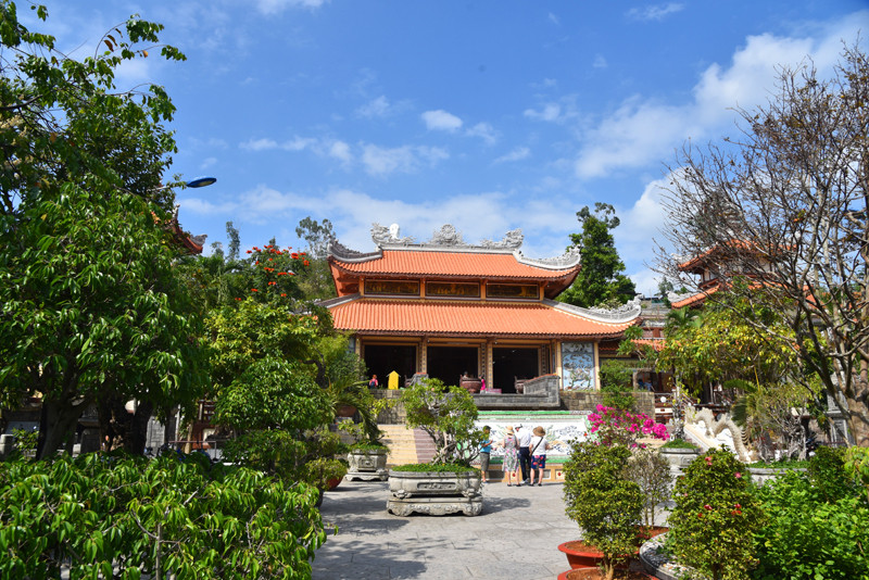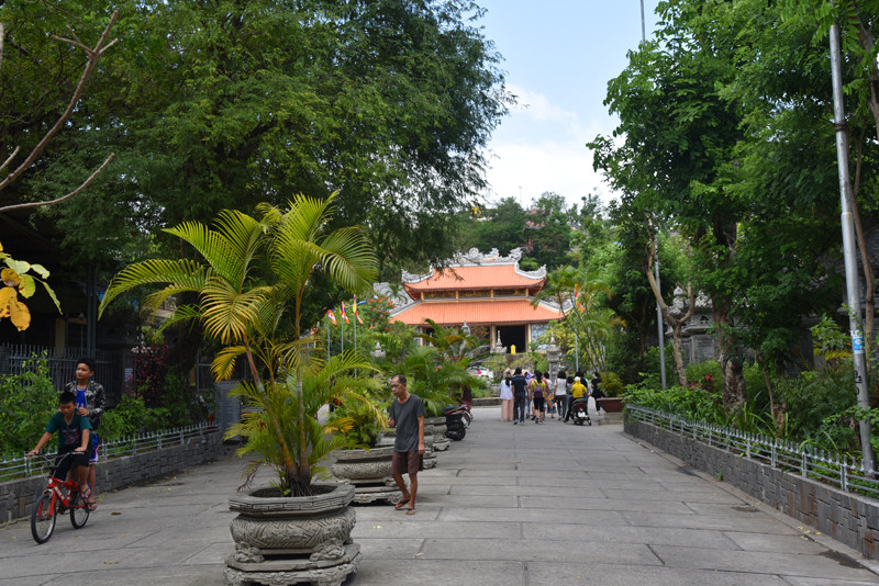 龙山寺掩映在绿树丛中,其建筑规模不算很大,历史也并不悠久,但它却是芽庄香火最为旺盛、名气最大的大乘佛教寺院。不纠结哪个皇帝“敇赐”,还是进寺院参观游览,乍一看这里的建筑风格,仿若来到了国内的某个佛教寺院。