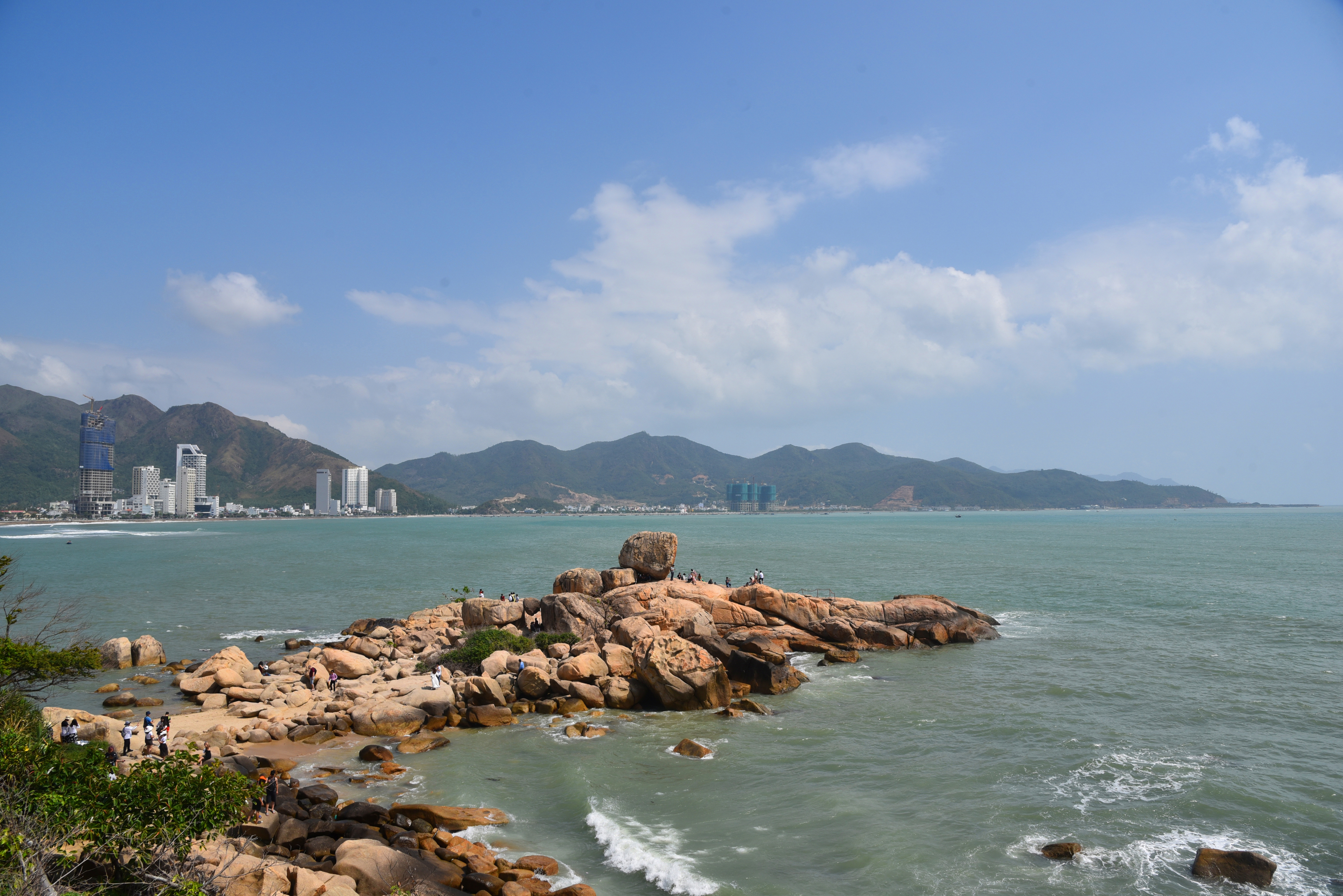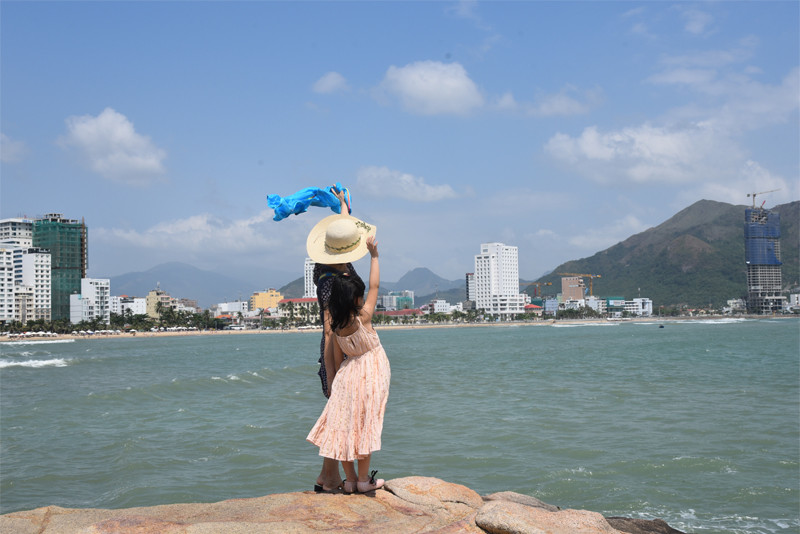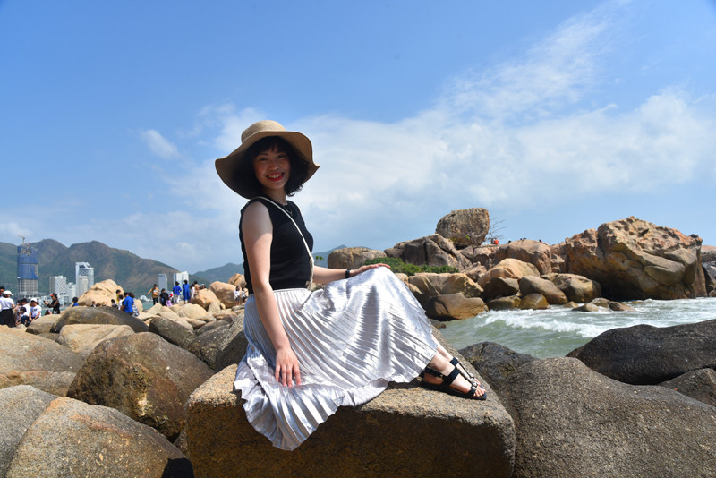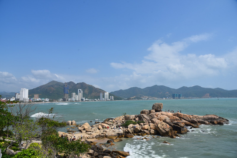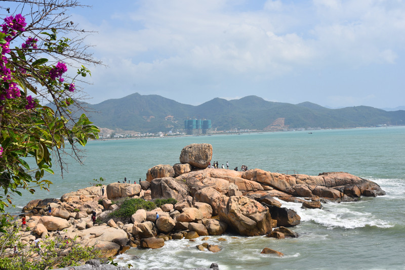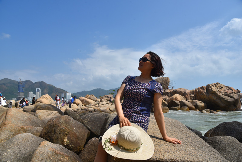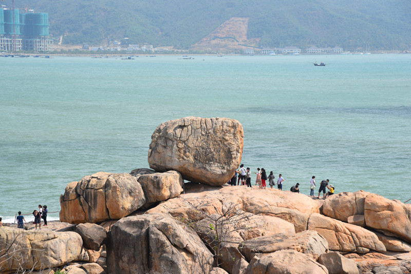 钟屿石岬角位于一处山峦环抱的海湾,重重叠叠的花岗岩向大海的方向延伸,上面那块大石头就是有名的五指岩。有道是:蓝天白云尽收眼底;碧海红石全在脚下。这样奇特的岬角景观,在以沙岸为主的芽庄,实在是不为多见。