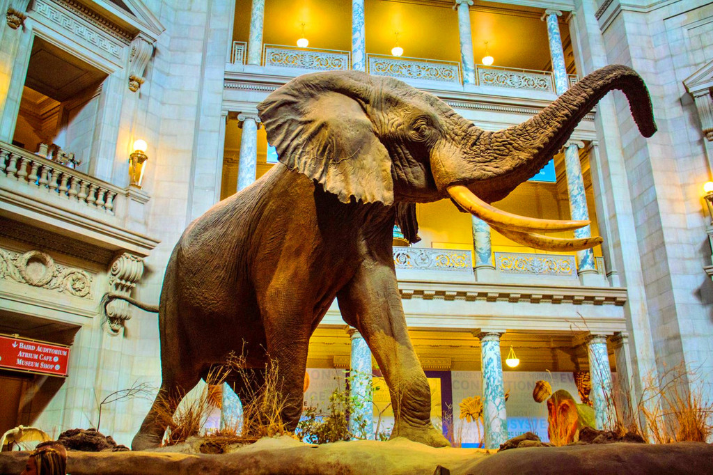 美国国家历史博物馆是华盛顿众多博物馆中最具影响力展馆之一,1910年开馆至今收藏展品多达一亿二千万件,从原始的恐龙化石、人类起源早期文物,到世界各地的稀有动物标本、珍贵矿藏宝石,很好地留存了自然科学和人类文化的遗产。一走进博物馆,巨大逼真的非洲野象出现在你的眼前,一走神还以为到了非洲大草原。小朋友非常喜欢这个博物馆,对动物标本、人类起源非常感兴趣,博物馆里面还有小朋友可以参与的标本室。