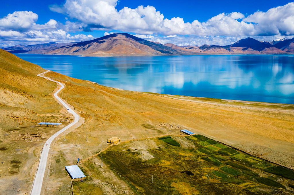 这个位置里面对喜马拉雅山脉,希夏邦马雪山最近,草地、湖泊、雪山进入一个画面,应该是是佩枯措最美的角度。听说湖中还有鱼。