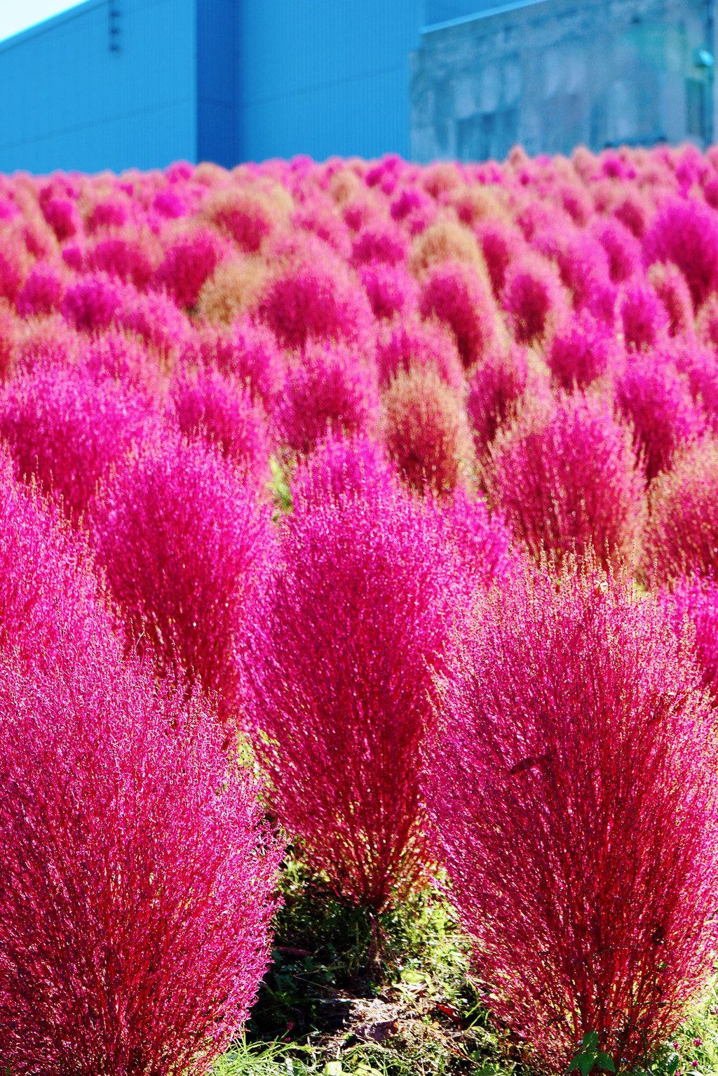 山上火艳艳的扫帚苗(也叫:菖蒲、地肤)连成一片宛若红毯!无意之间,成就了一个网红打卡地!