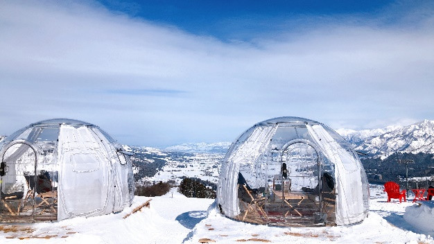 SNOW GARDEN的主要景点是圆顶帐篷。 这些帐篷必须提前预订,并有60分钟的使用限制。内饰也很时尚! 这就像野营一样!