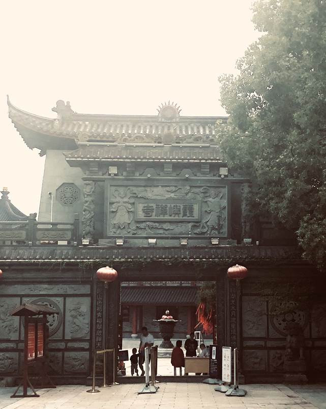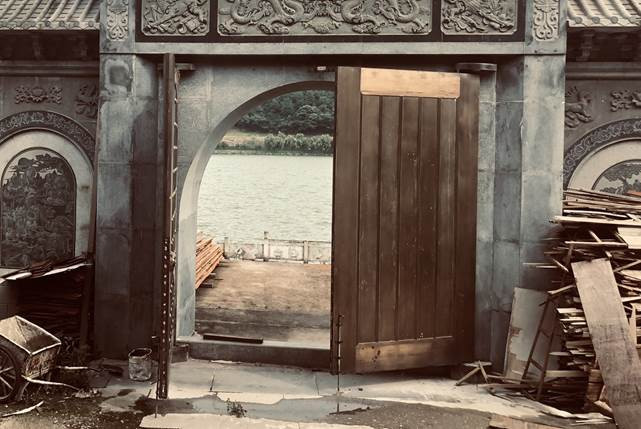 到了寺庙里面,发现有这个后门,门并不大,但是开开门就是湖面,这种布景确实很好。
