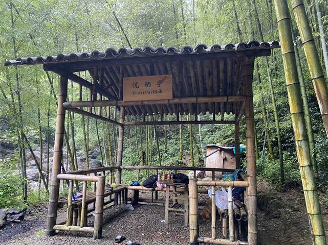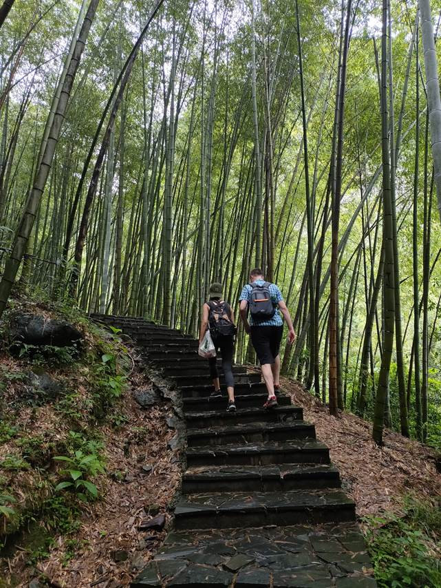两旁都是特别高的竹子,真的是长见识系列,我都没有见过这么高的竹子。走着走着就能看到小溪流,水很清澈。我看到有人在石头上蹲着,用这里的水流洗脸,估计得很舒服吧。