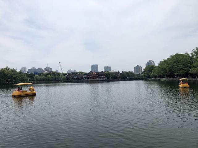 出发去了月湖公园,公园里面有一个大湖,四周都是绿树。还可以坐上游船游览一番。