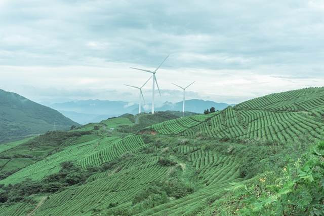 公路上有许多大风车,还有不少梯田,特别好看,这才是大自然的风光嘛。