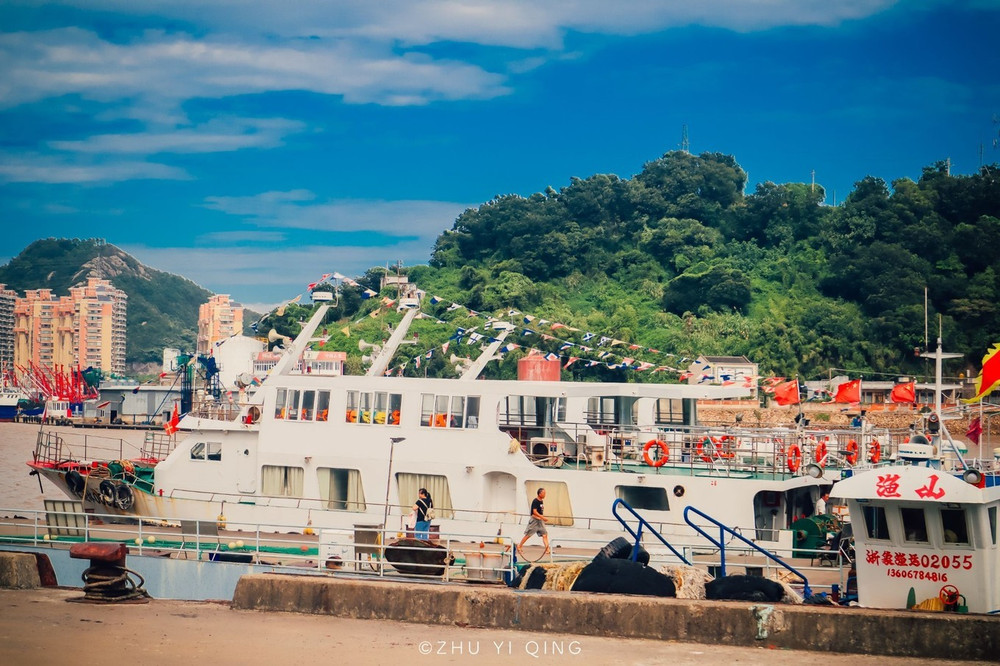 走出古城,是一片的天然渔港,毕竟是个渔港古城,也是先有渔港,才会有先人在这里建造古城。整个港湾的前方被几座瘦长型的小岛环抱着,只留出几个小小的出海口,所以港湾内几乎没有海浪,是一个风平浪静的避风港,石浦就像是大自然给当地海捕渔民的恩惠,许多当地人一生都矜矜业业投身在捕鱼业中。