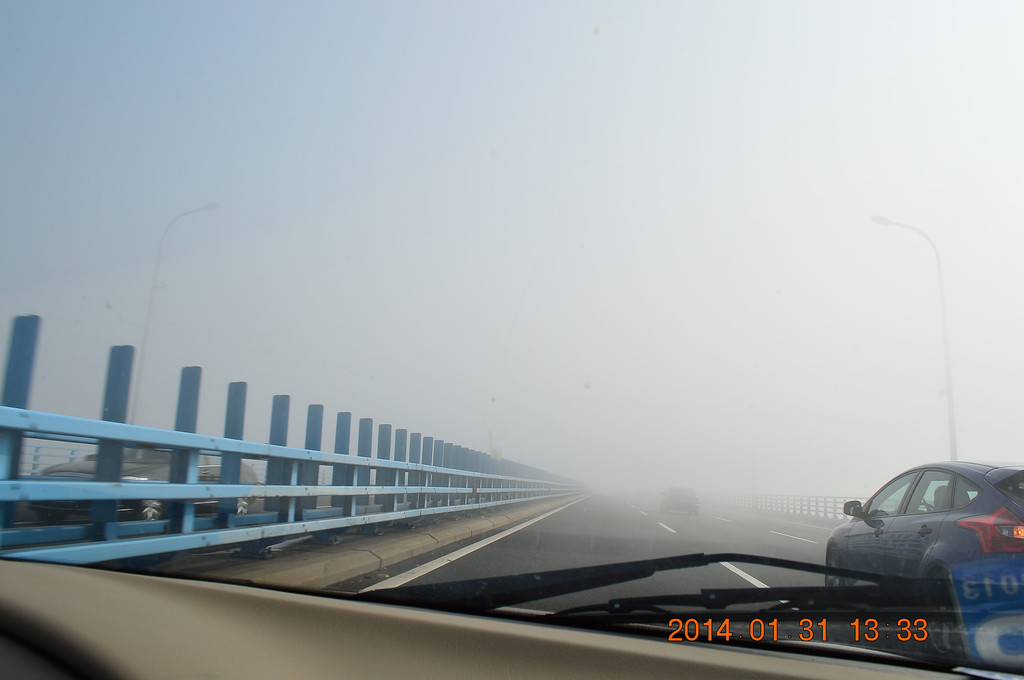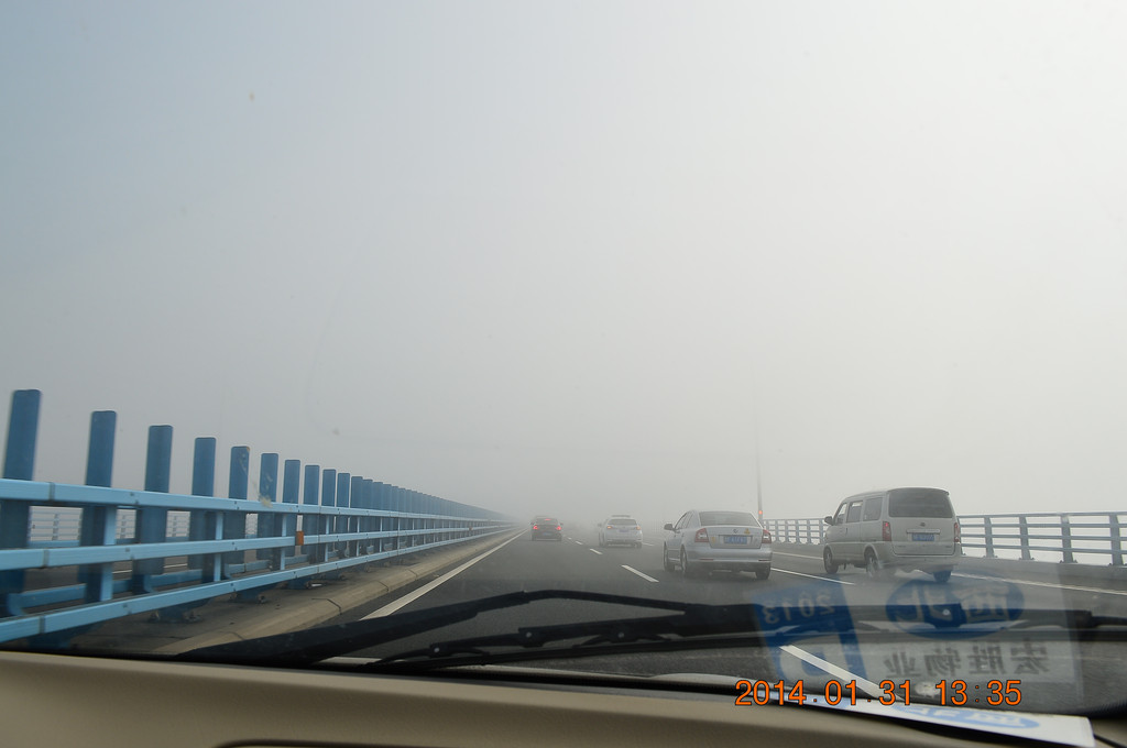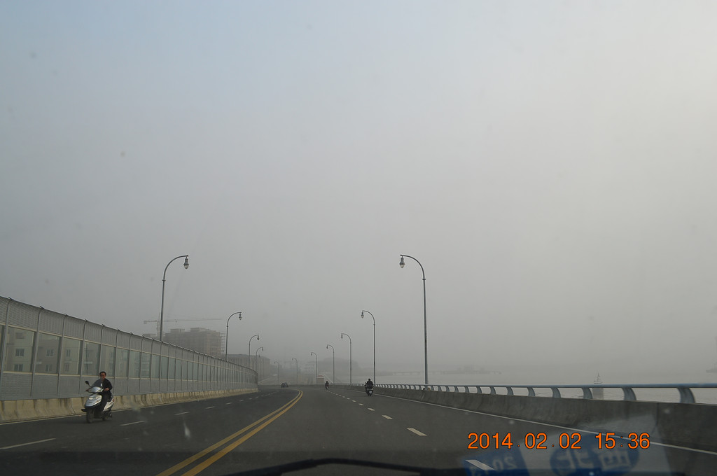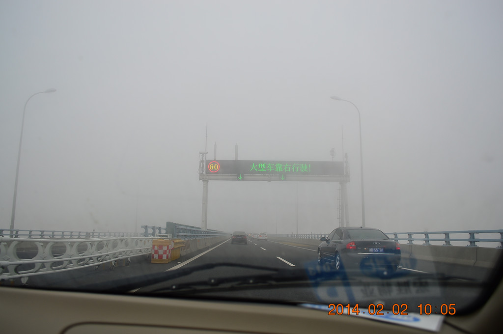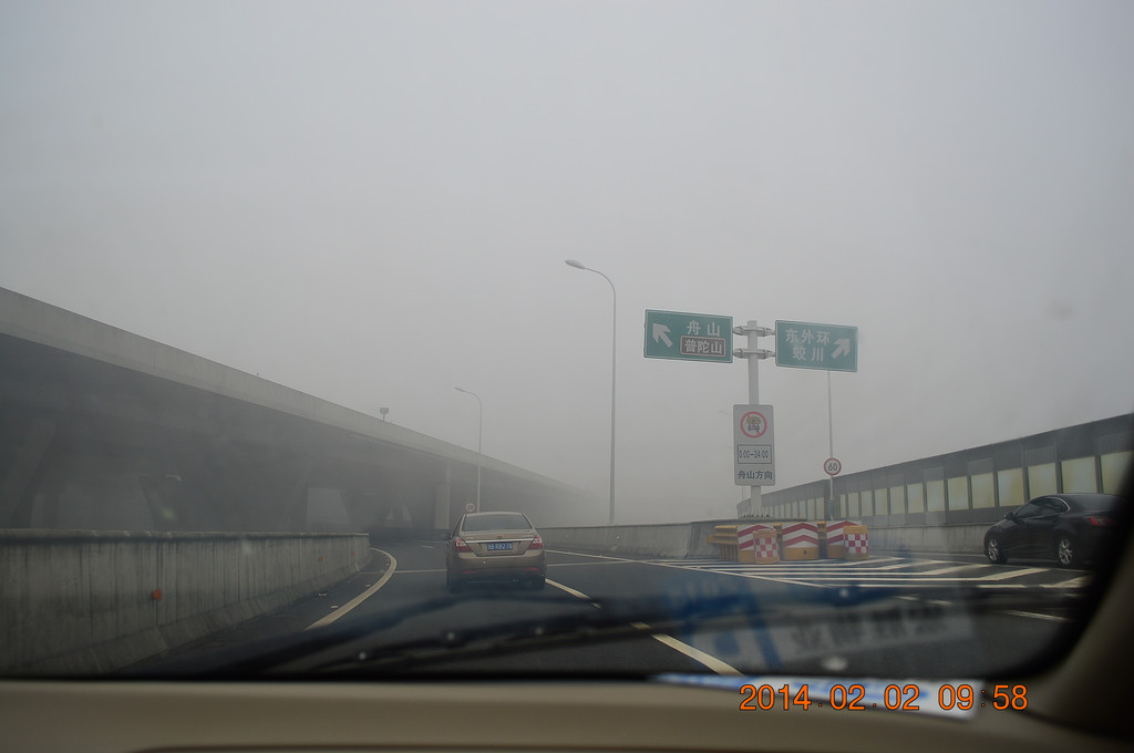 高速上又遇迷雾,舟山跨海大桥上的迷雾尤其严重。