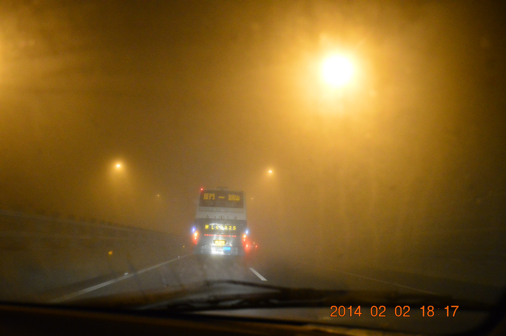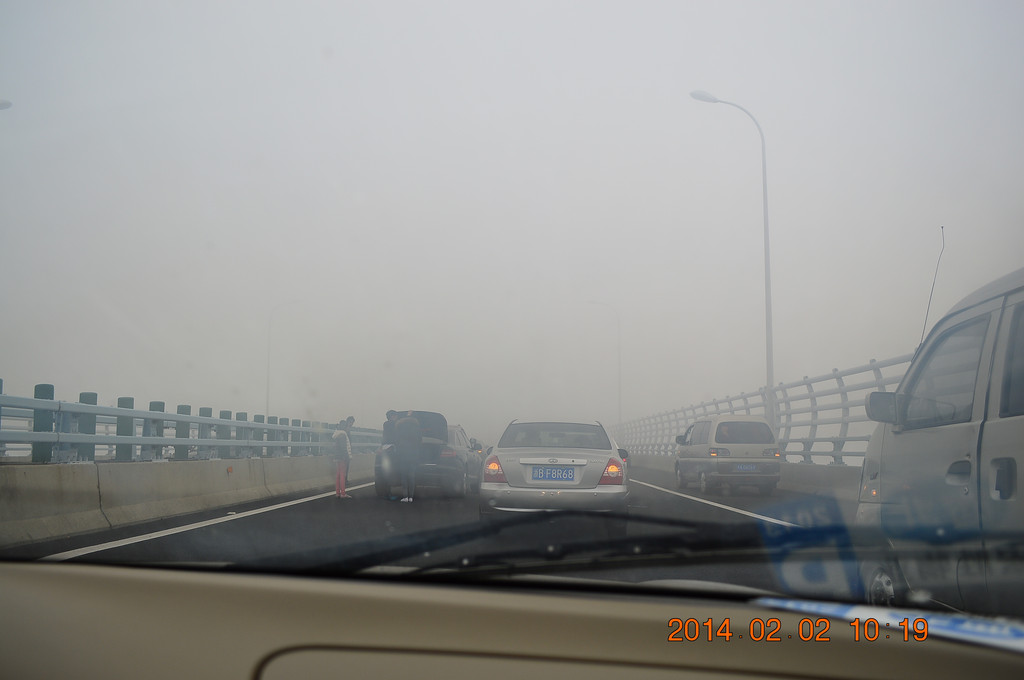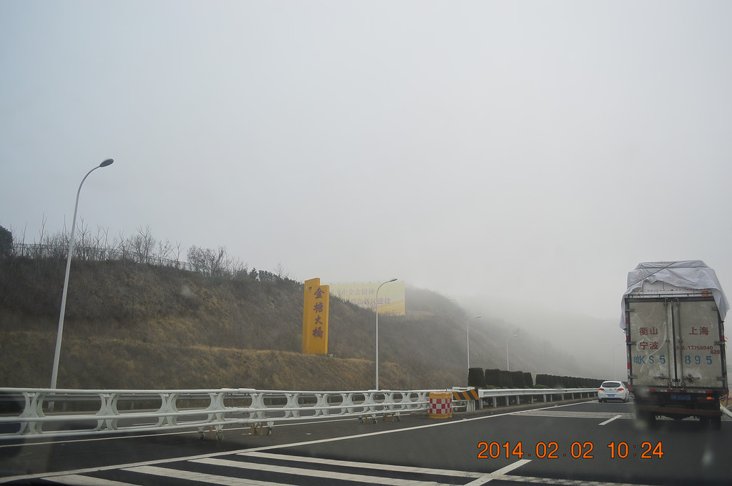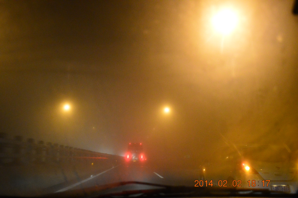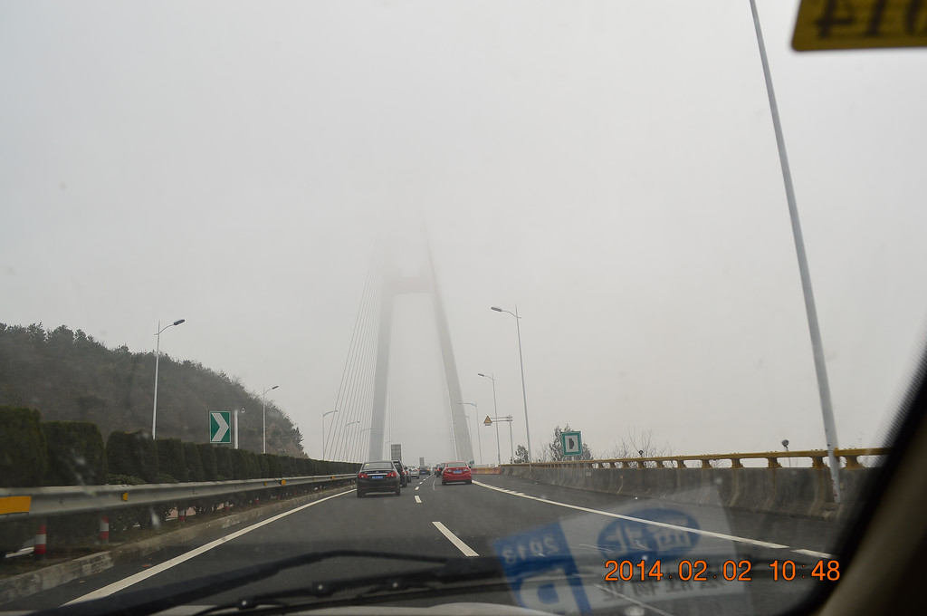 高速上又遇迷雾,舟山跨海大桥上的迷雾尤其严重。