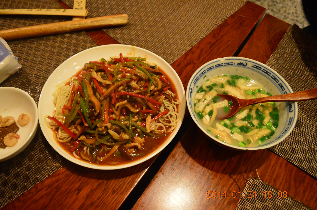 猪肝虾仁面。
