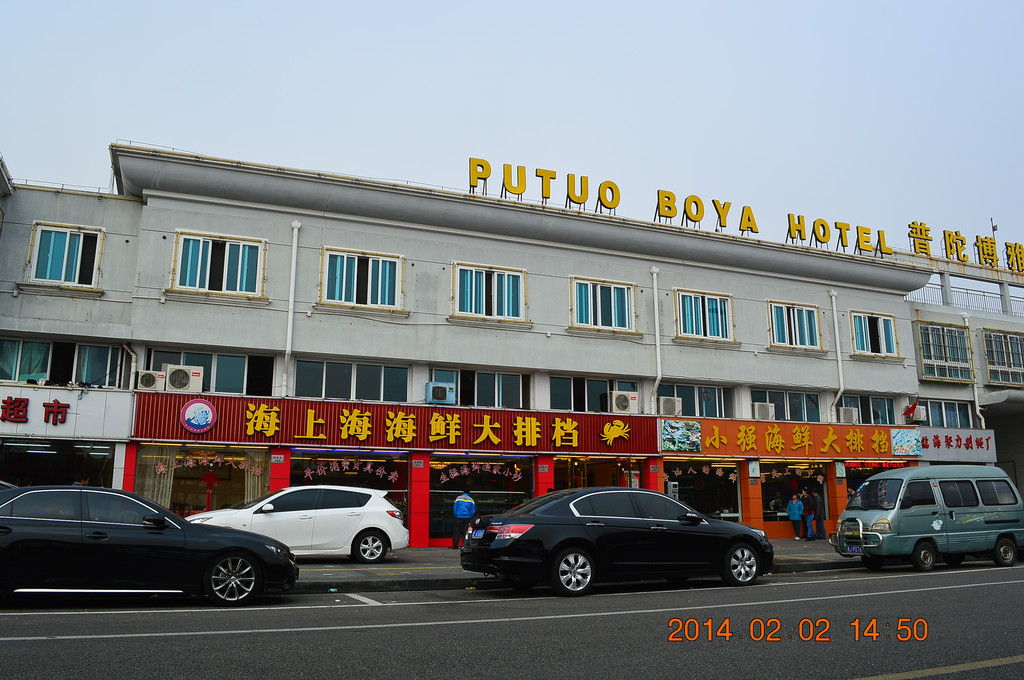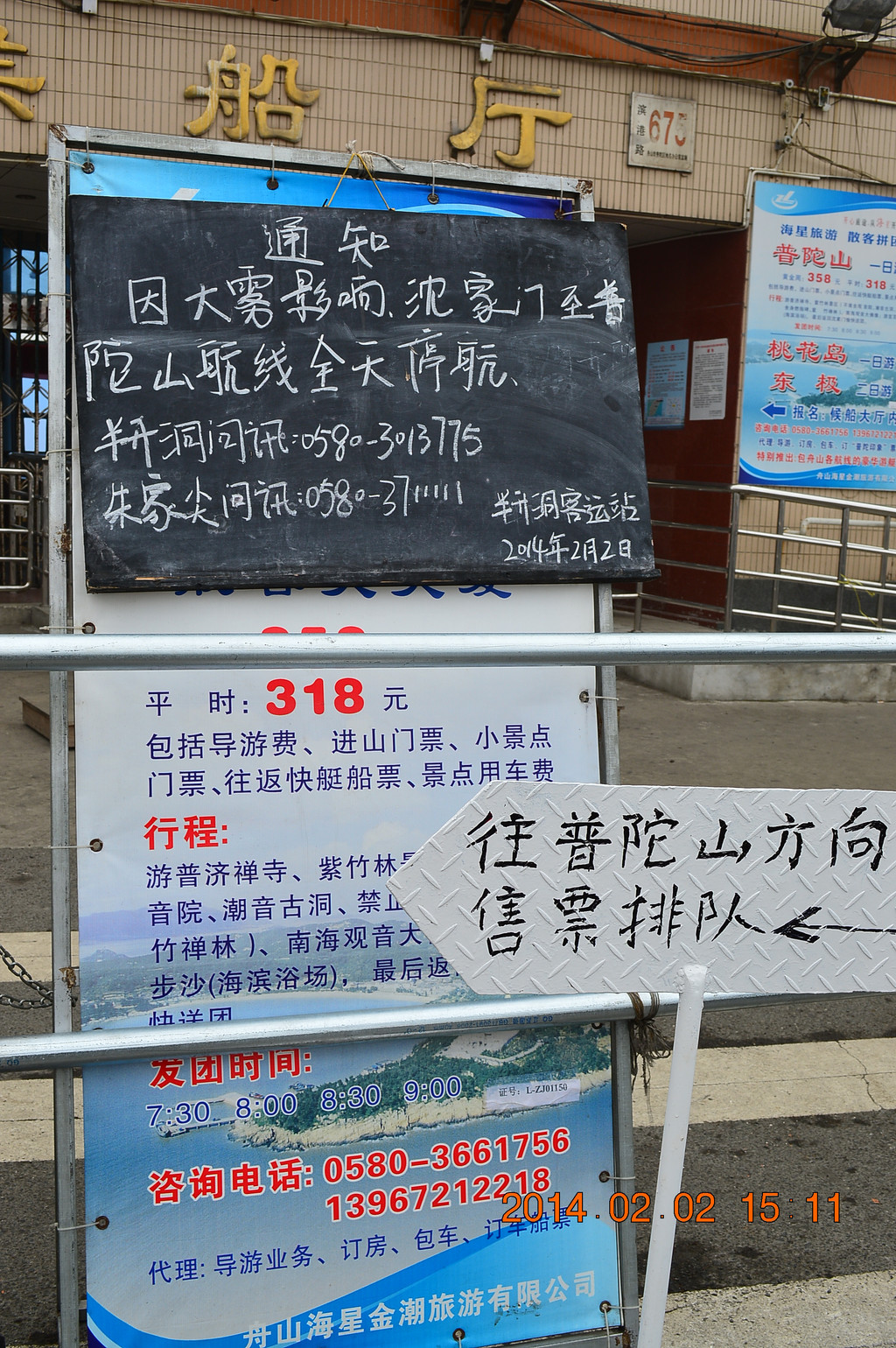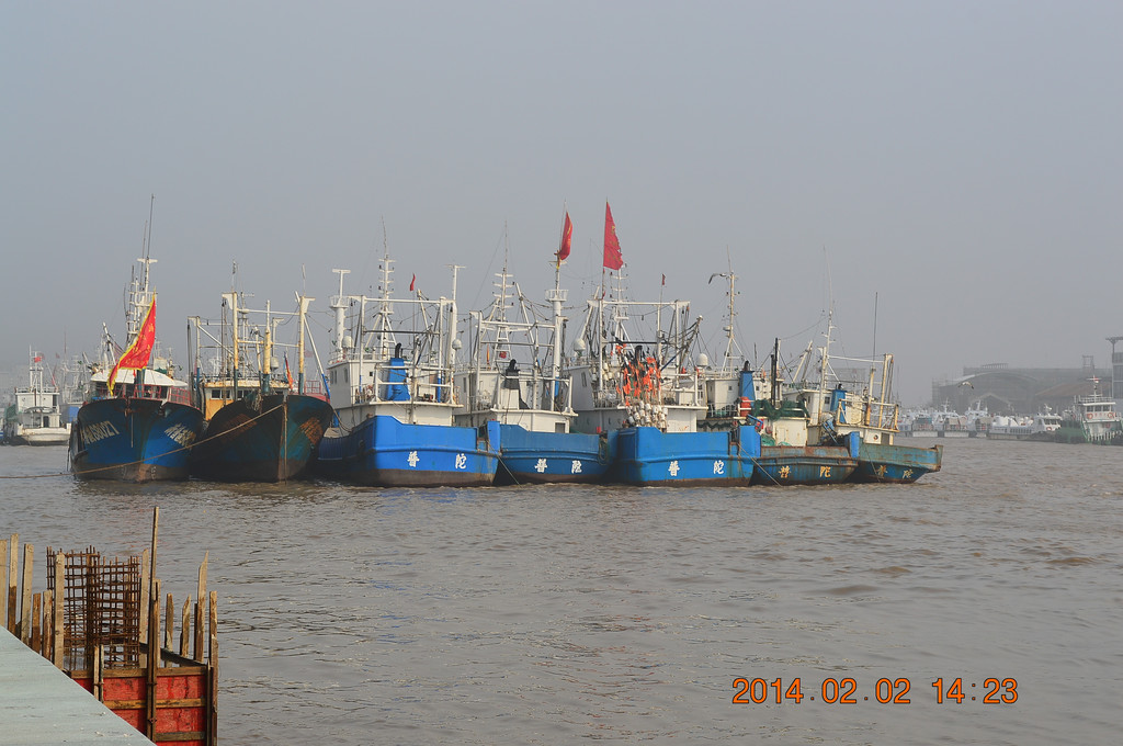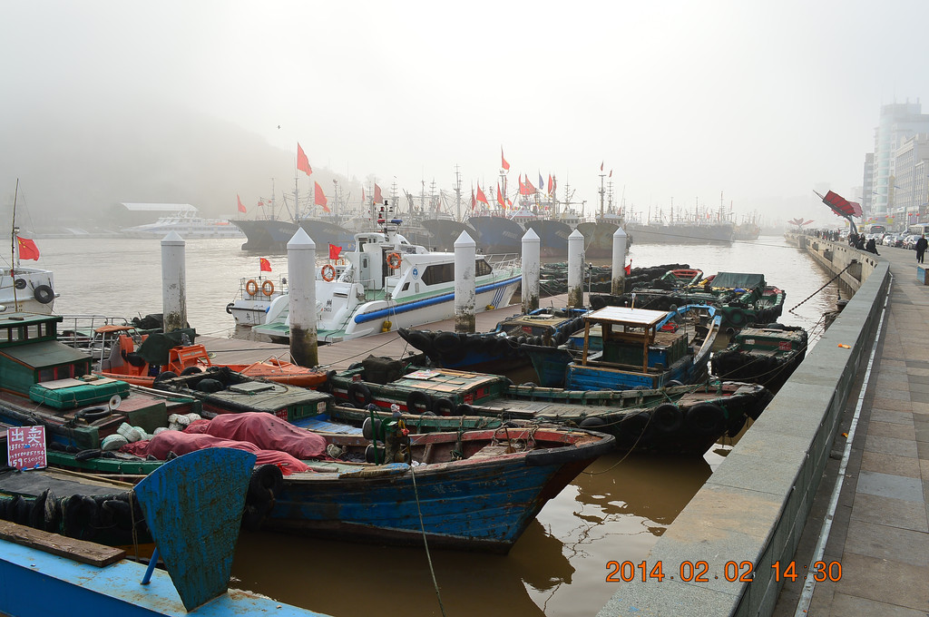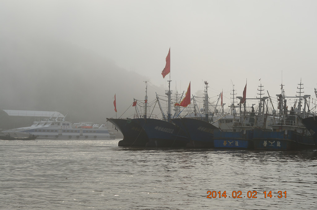 沈家门前往普陀山的码头。游客滞留沈家门,晚上连住宿也成问题,锦江之星门店的标房涨到500多元。