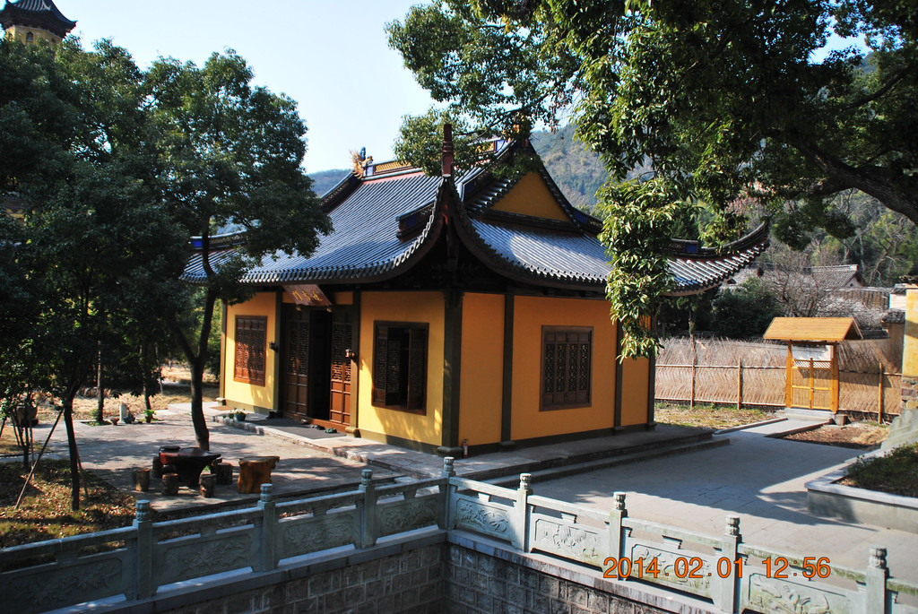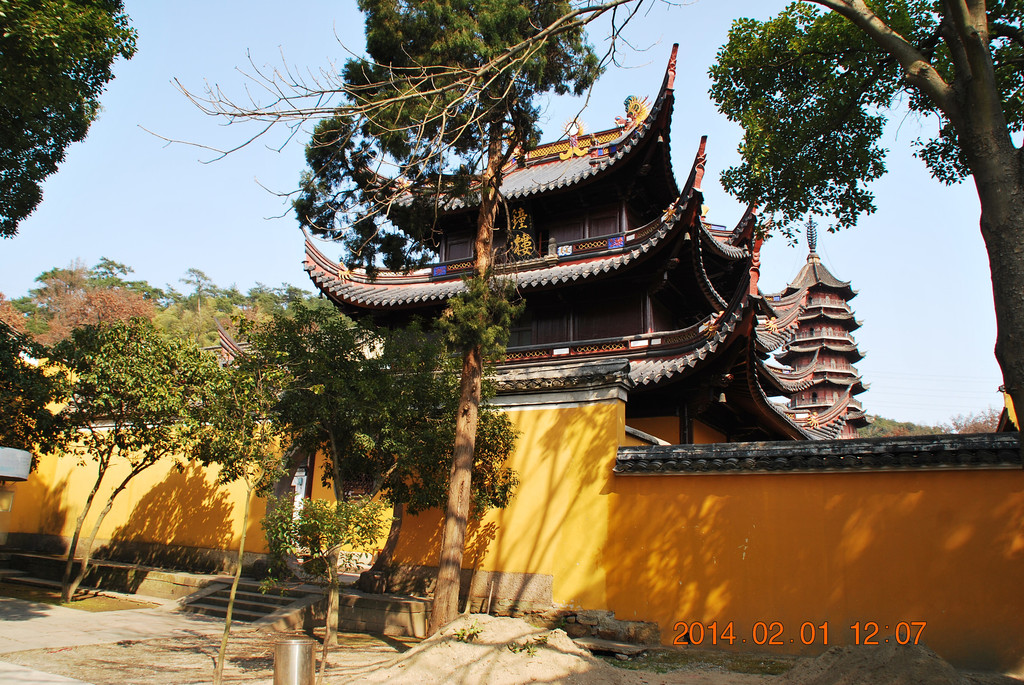 阿育王寺位于329国道边,另一侧是通往北仑的铁路。