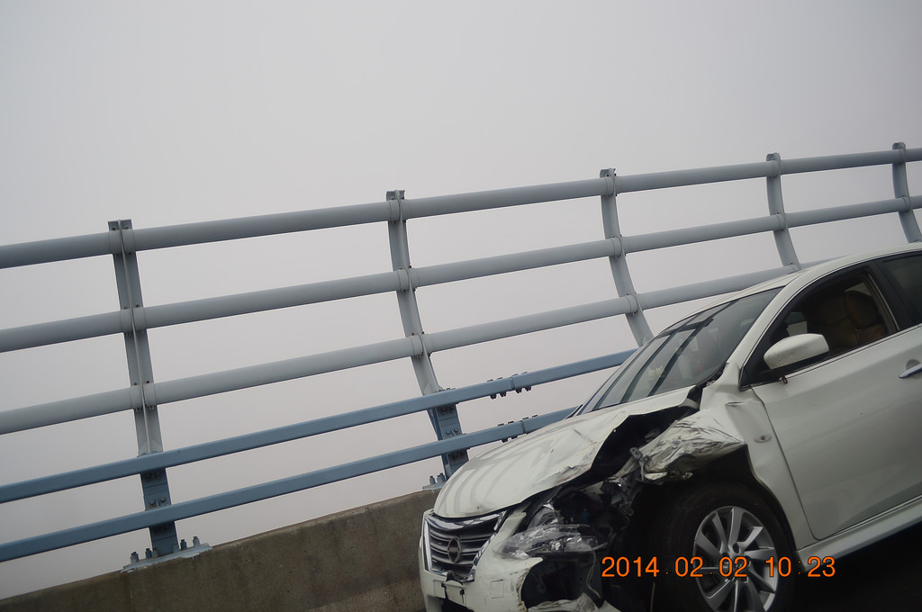 跨海大桥上又遇迷雾,能见度不足百米。