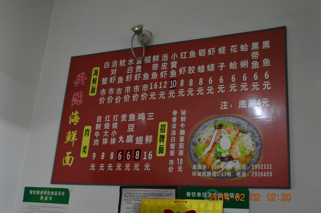 中午在定海区政府对面的小店里吃海鲜面,共花了40多元。