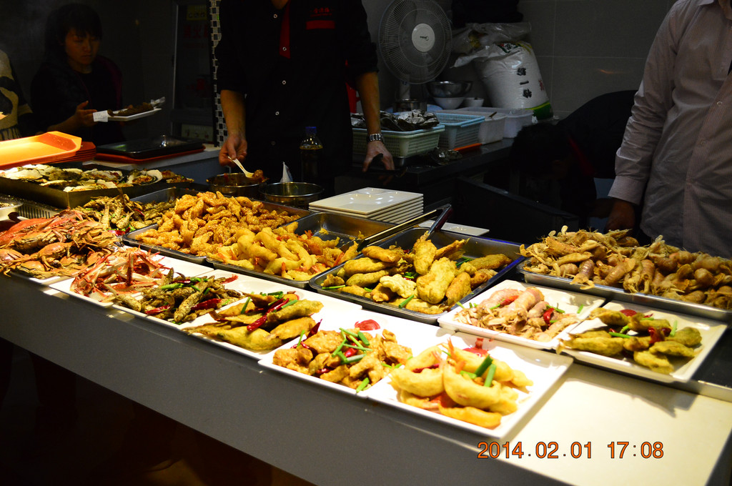 沈家门的海鲜排挡店大多春节期间照常营业,但价格上涨很多,一个西红柿蛋汤卖20元,一大盆米饭20元。
