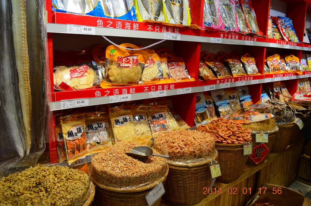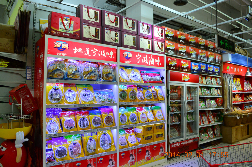 晚上开车前往江东的家乐福买了些宁波特产。
