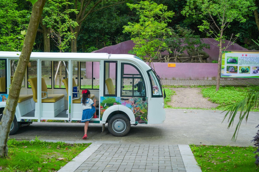 现在开启我们的游园之旅吧,陆地上我们选择的是景区的观光车,从北门进入右手边就是观光车驿站,然后根据动物科普讲解和行为展示时间表来规划行程。