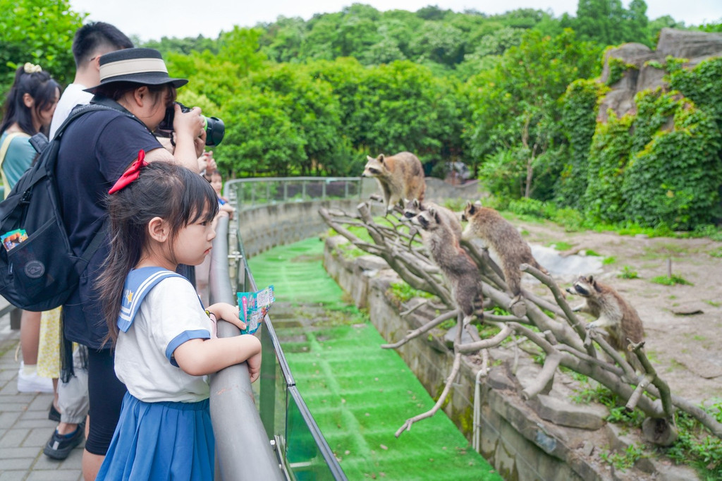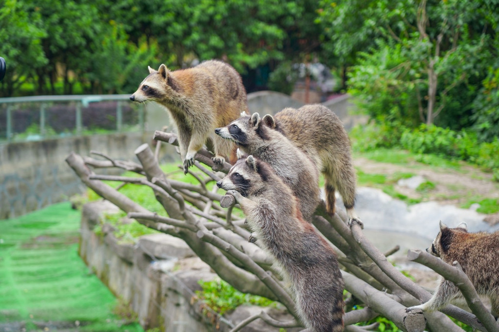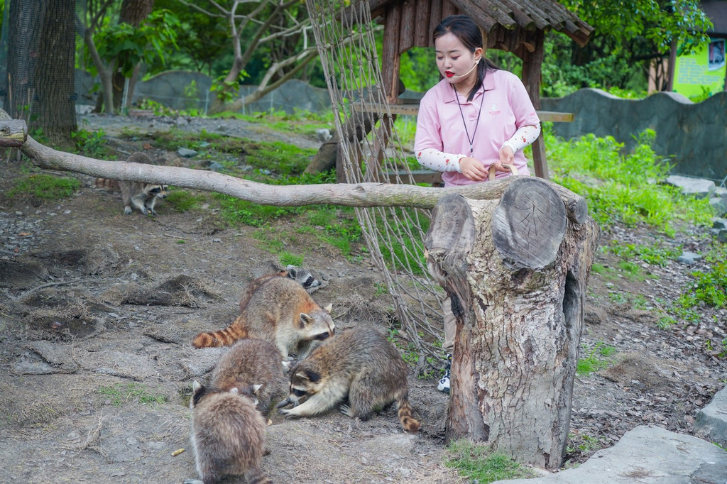 我们的第一站就是小浣熊展区,这里就在北门旁边,每天有好几场动物讲解(9:20 11:50 13:50),带小朋友来最适合不过,不仅能看到可爱的小动物,还能了解到课堂上了解不到的知识,饲养员是一个小美女,这些浣熊也非常听她的话。